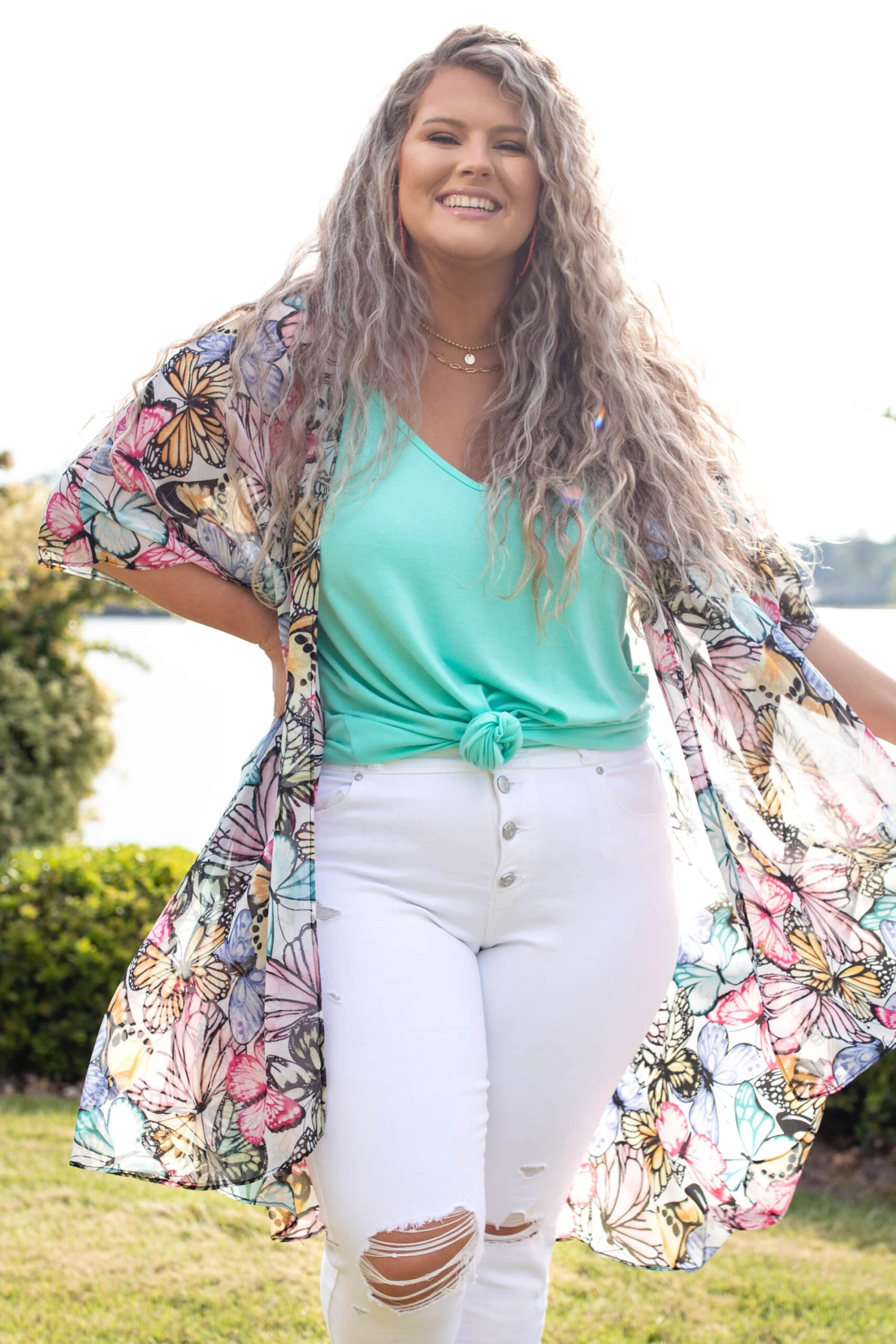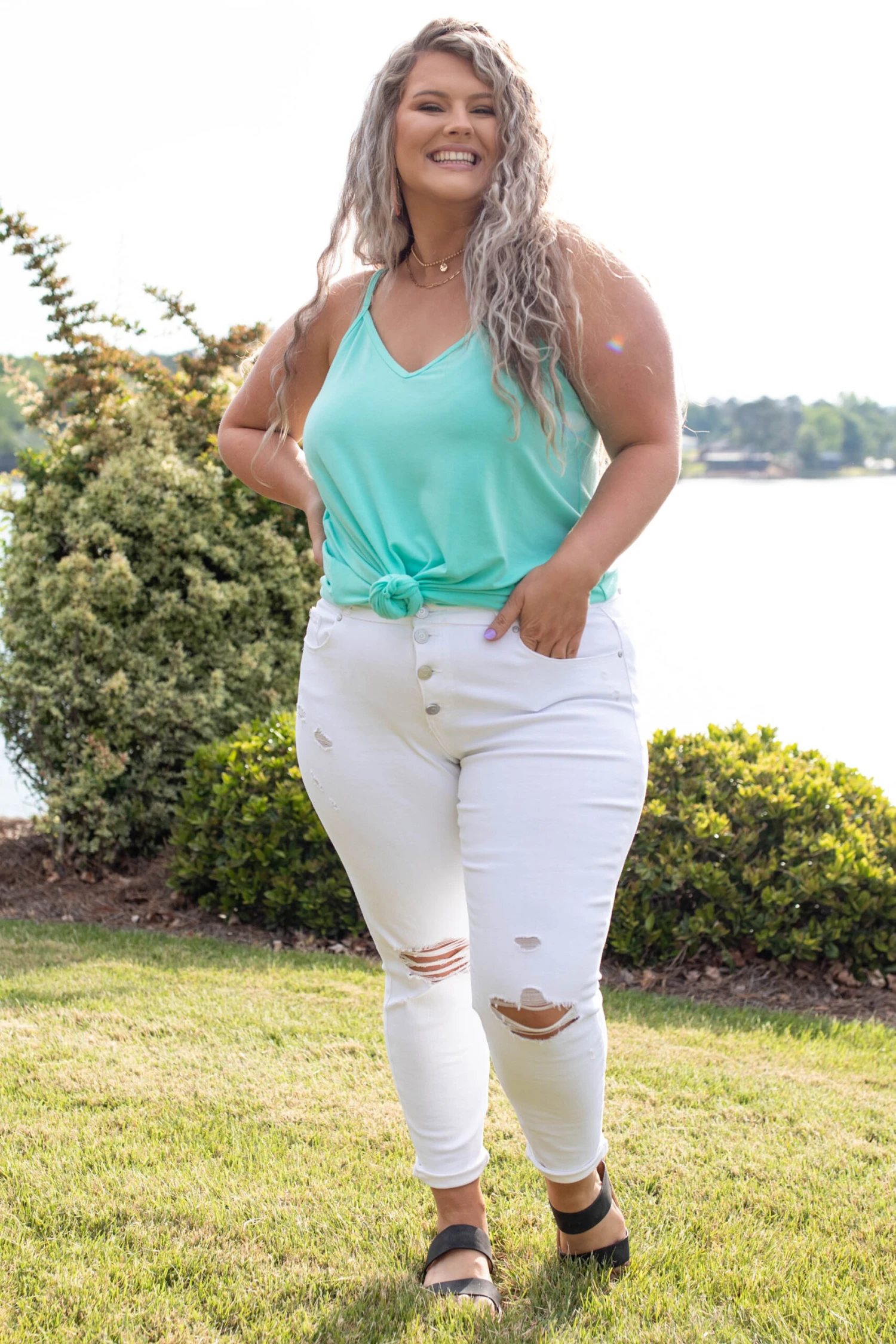 Feeling warm from the sun? Take off your kimono and reveal this chic tank! This tank is perfect for layering with your favorite pieces and wearing on its own! It’s easy to dress up or down and looks good with everything in your wardrobe! Not to mention how flattering the fit is! Simply, style this tank with skinnies and booties for an effortlessly beautiful outfit, and add a colorful kimono for a bold addition!Â