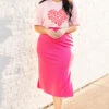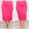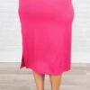Live wild and free in this beauty! This skirt has a fierce fuchsia color with a sassy split and sexy fit that is perfect for any occasion! The stretchy, comfy fit is great for a day out on the town or even a date night! Pair this cutie with a sassy top and accessories for an unforgettable look!