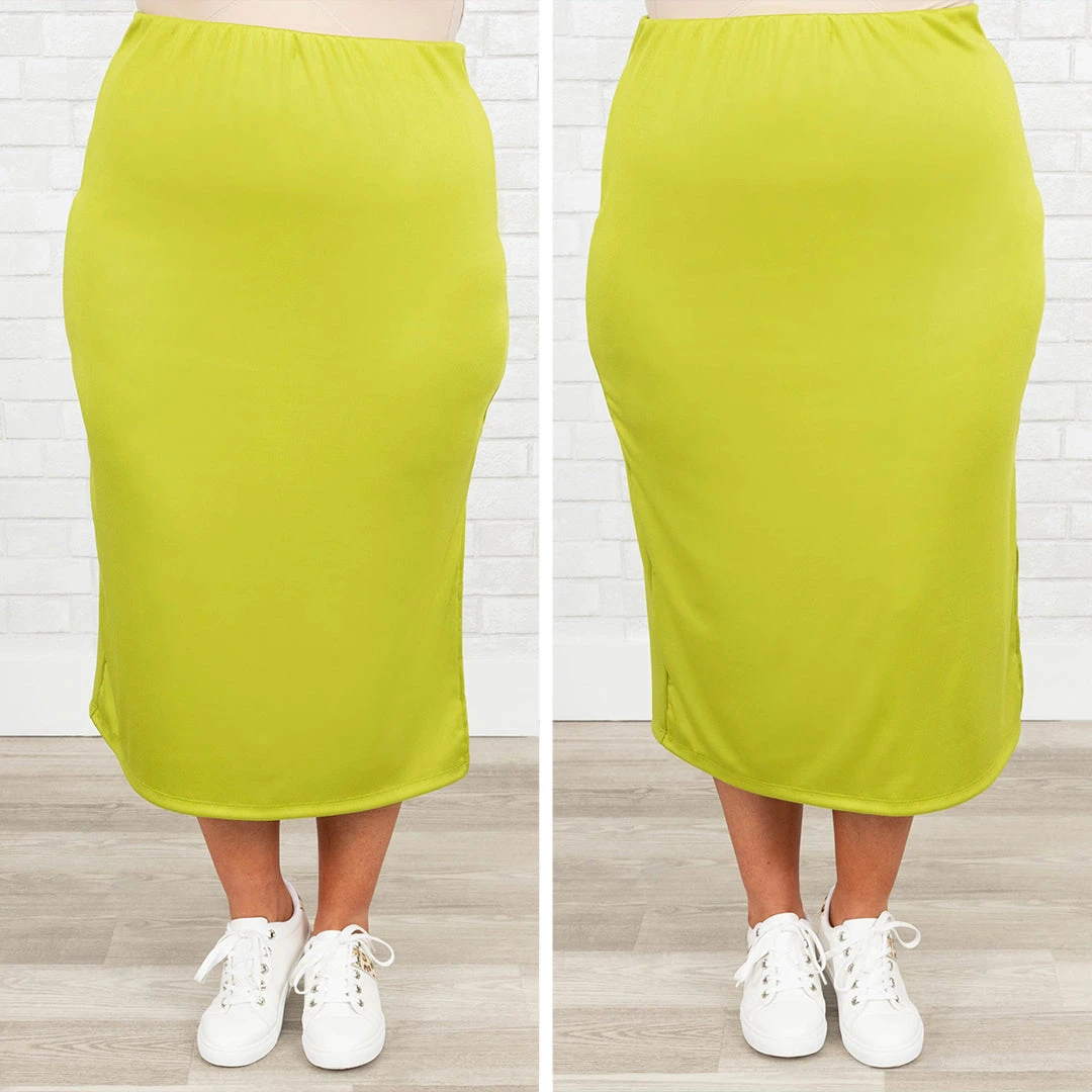 Live wild and free in this beauty! This skirt has a bold lime color with a sassy split and sexy fit that is perfect for any occasion! The stretchy, comfy fit is great for a day out on the town or even a date night! Pair this cutie with a sassy top and accessories for an unforgettable look!