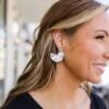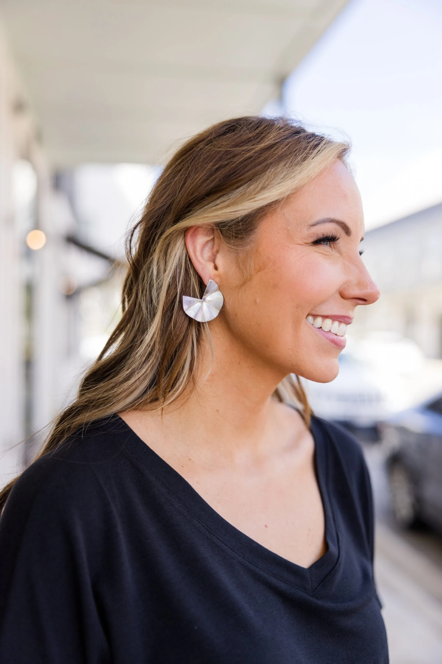 Turn heads with these groovy earrings! The fan-shaped design gives a retro vibe, while the rhodium finish adds a touch of sophistication! These stud earrings are the ultimate statement piece!