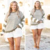 You + this sweater = together forever! This sweater has a dazzling green color with a stripe pattern that is just in time for the season! The stretchy fit and frayed hemline make it that mush sweeter! Pair this sweater with some skinnies or shorts for a cozy, casual look!