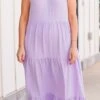 Get ready to slay the weekend in our Weekend Wardrobe Maxi Dress! Made from airflow material, this dress keeps you cool and comfortable while you turn heads in the lovely lavender color! The ruffle detailing along the neckline adds a touch of feminine flair, and the flowy fit and functional pockets make it both stylish and functional!