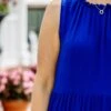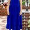 Get ready to slay the weekend in our Weekend Wardrobe Maxi Dress! Made from airflow material, this dress keeps you cool and comfortable while you turn heads in the lovely royal blue color! The ruffle detailing along the neckline adds a touch of feminine flair, and the flowy fit and functional pockets make it both stylish and functional!