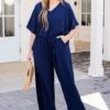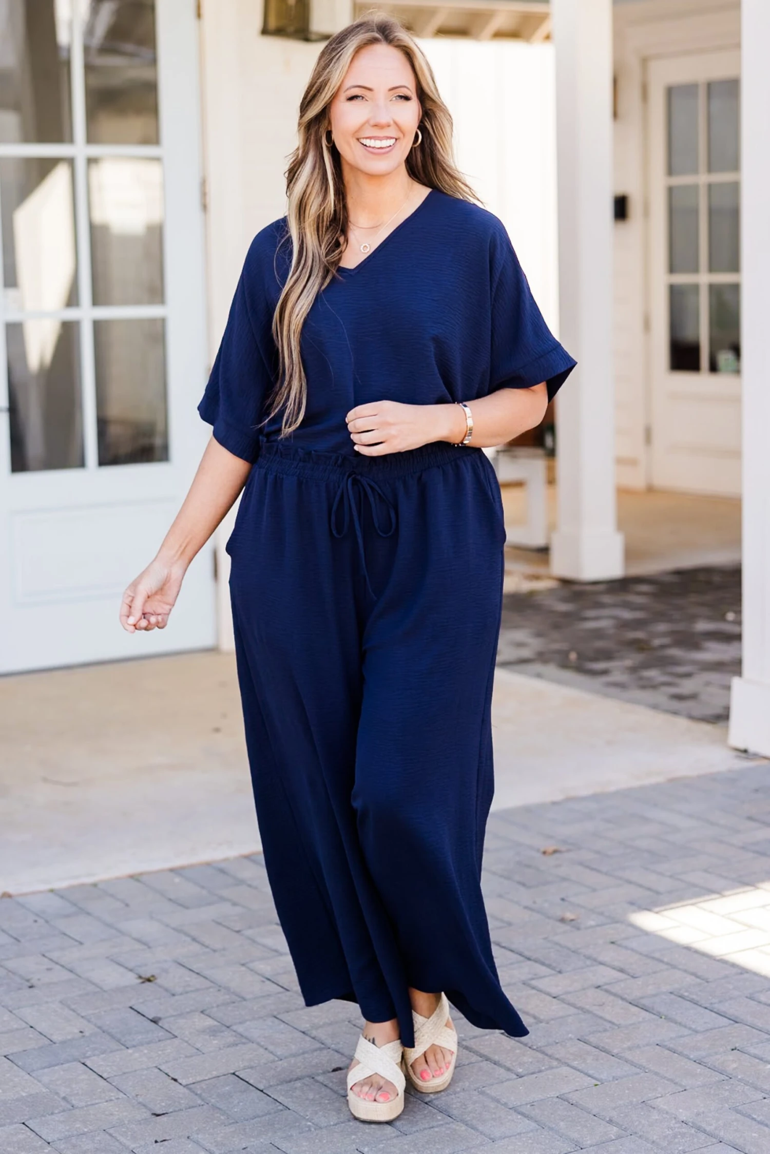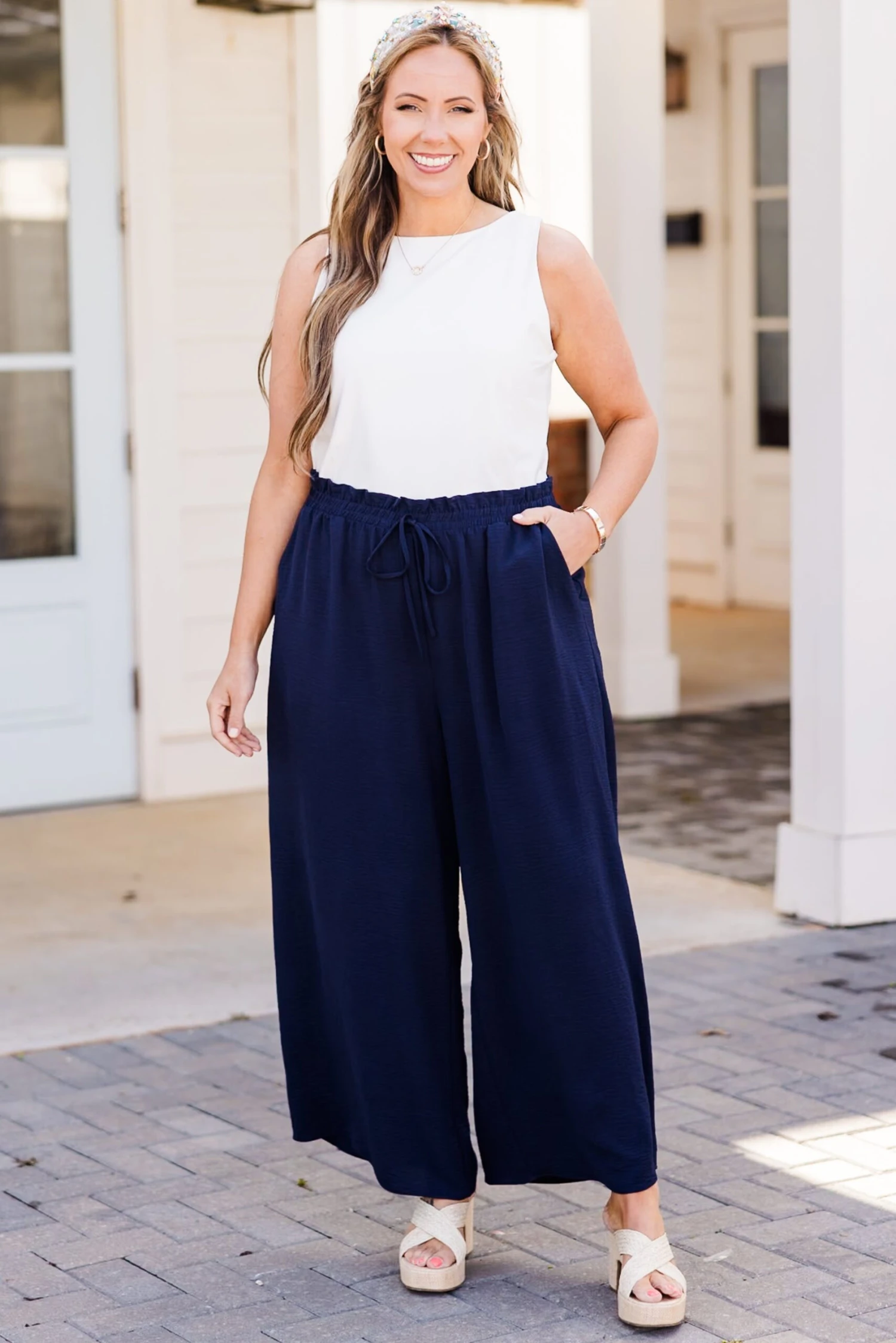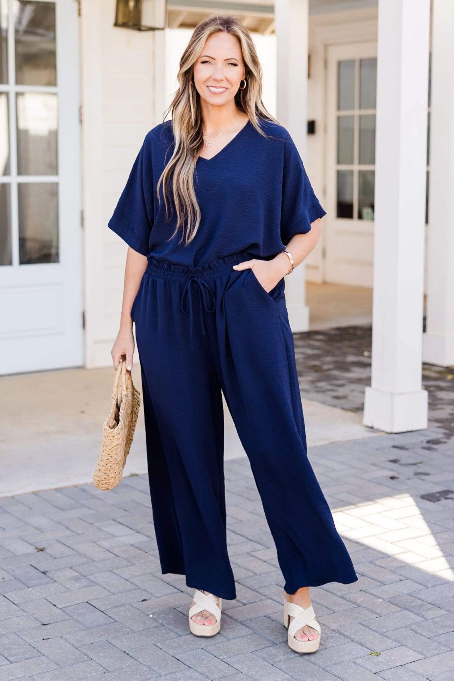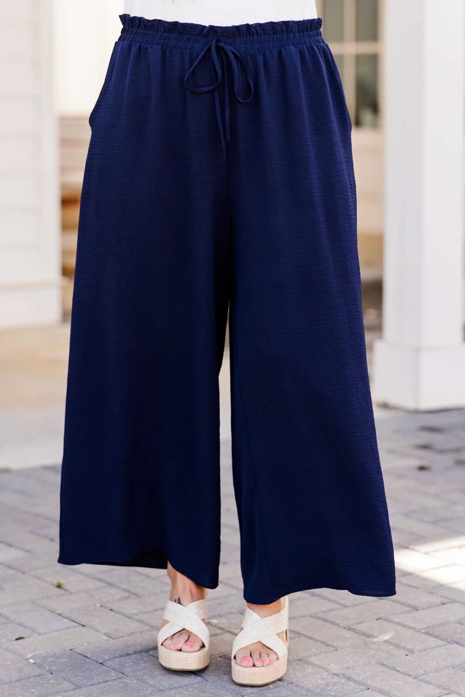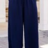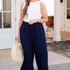 Looking for ways to spice up your weekend style? Our ALL NEW weekend wardrobe is here! These navy blue colored pants offer ultimate comfort and style! The lightweight, wrinkle-resistant material allows for air flow, making them perfect for any casual occasion! Pair it with your favorite tops and accessories for a versatile and chic look!Â