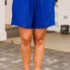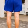Looking for ways to spice up your weekend style? Our ALL NEW weekend wardrobe is here! These royal blue colored shorts offer ultimate comfort and style! The lightweight, wrinkle-resistant material allows for air flow, making them perfect for any casual occasion! Pair it with your favorite tops and accessories for a versatile and chic look!Â