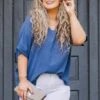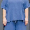 Looking for ways to spice up your weekend style? Our ALL NEW weekend wardrobe is here! This top in denim is expertly designed with wrinkle resistant fabric and air flow material for a comfortable and effortless look! Its bold color makes it perfect for pairing with all of your favorites, while its flattering fit adds an extra touch of flair!