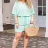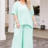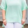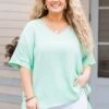 Looking for ways to spice up your weekend style? Our ALL NEW weekend wardrobe is here! This top in mint is expertly designed with wrinkle resistant fabric and air flow material for a comfortable and effortless look! Its bold color makes it perfect for pairing with all of your favorites, while its flattering fit adds an extra touch of flair!
