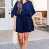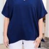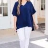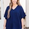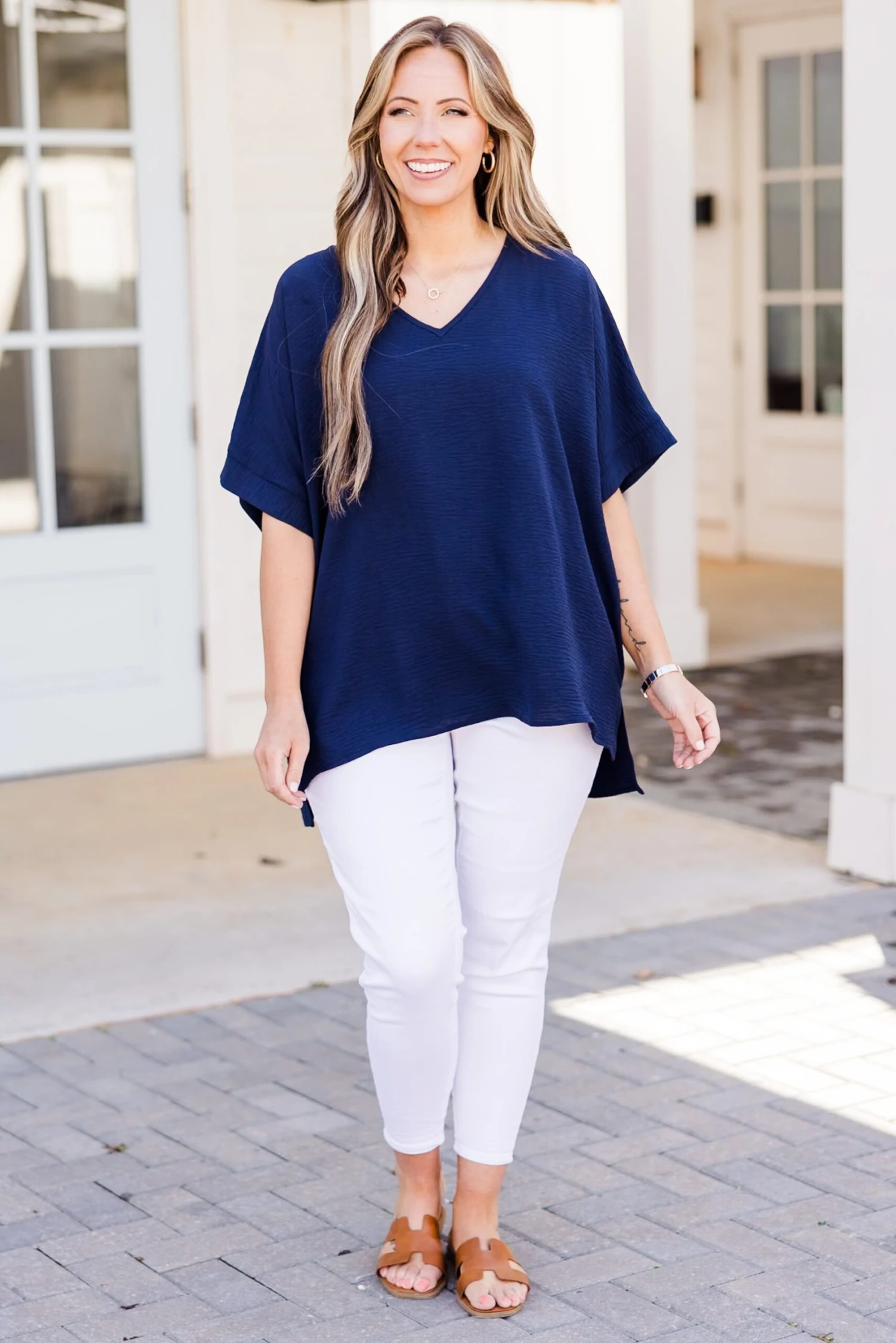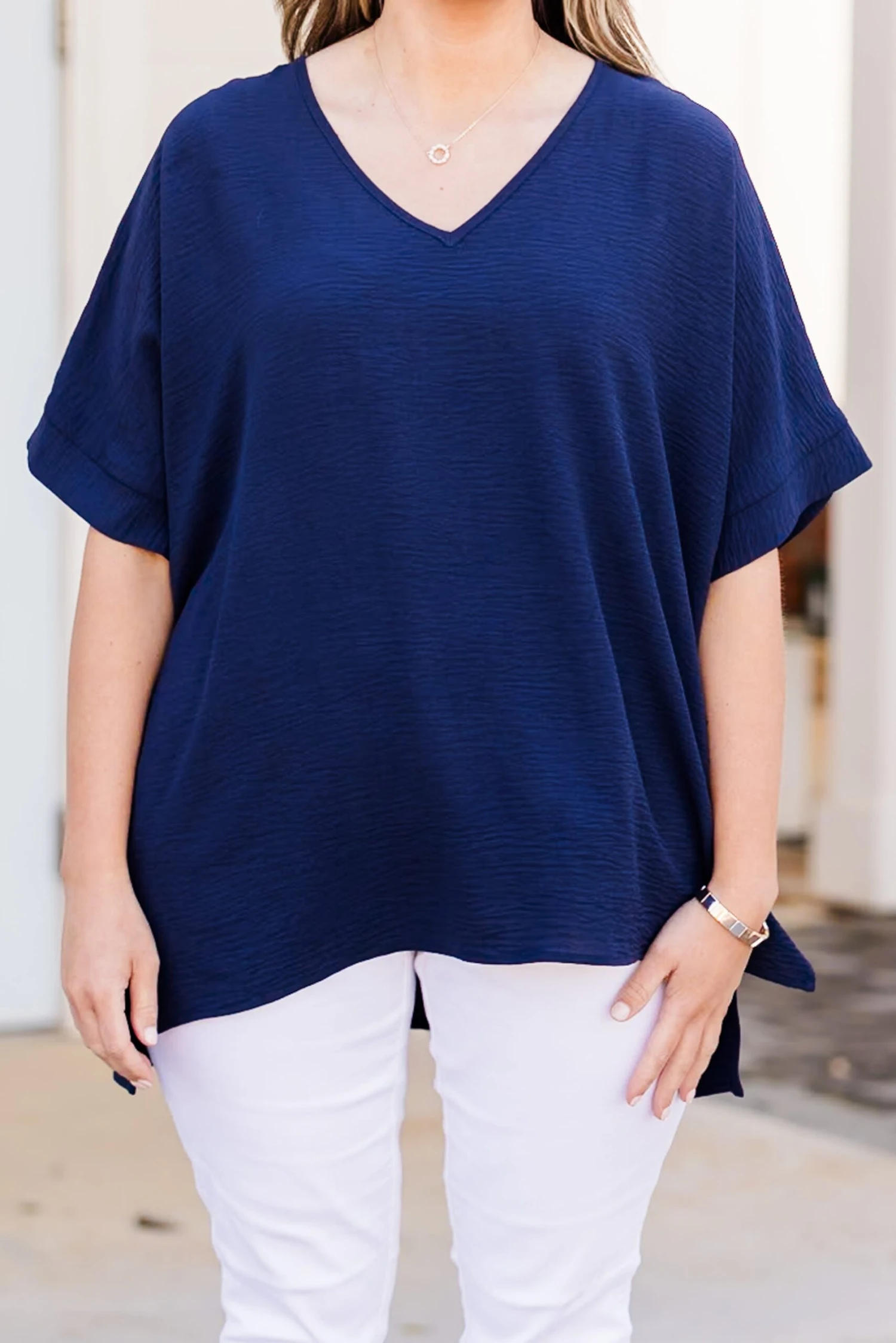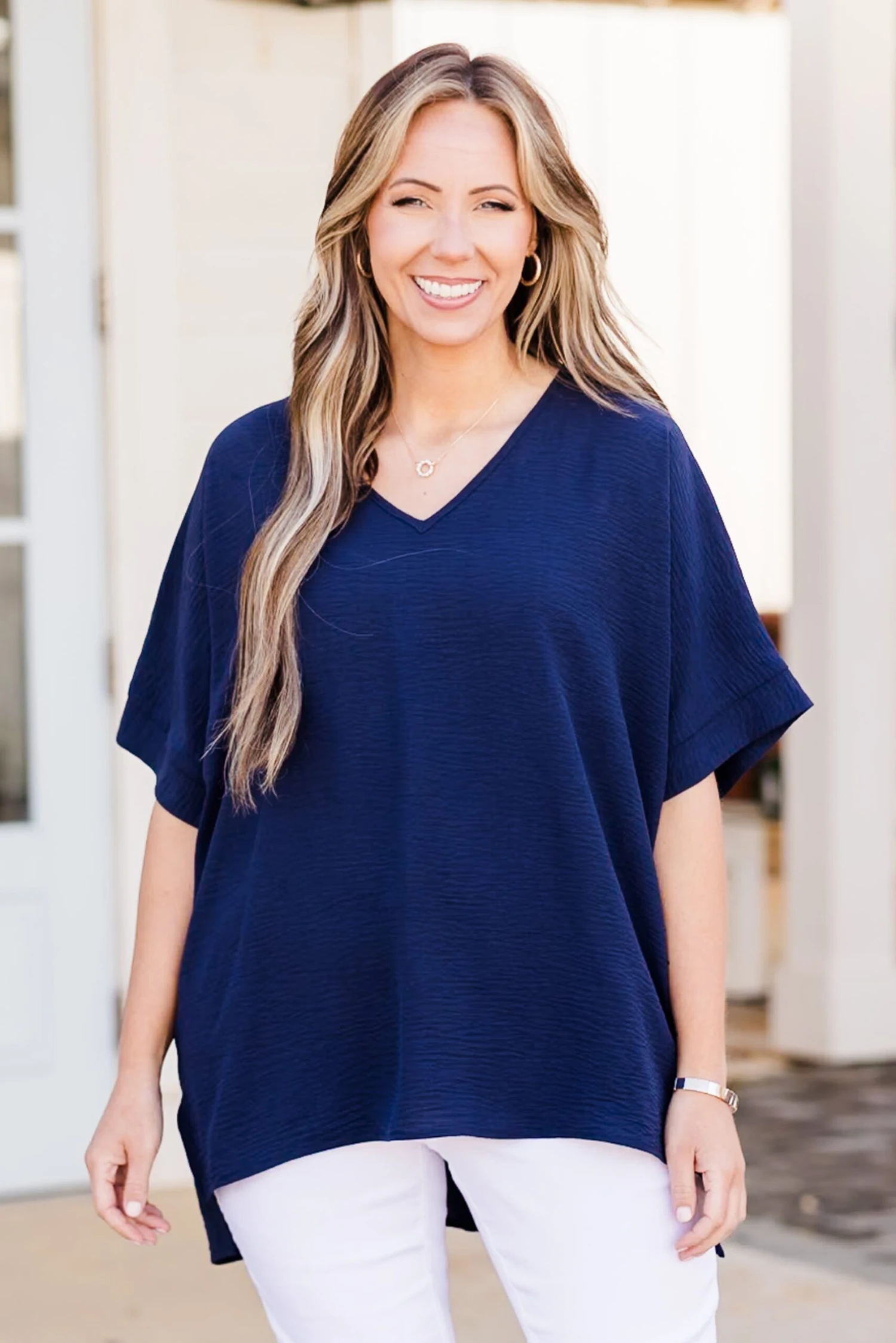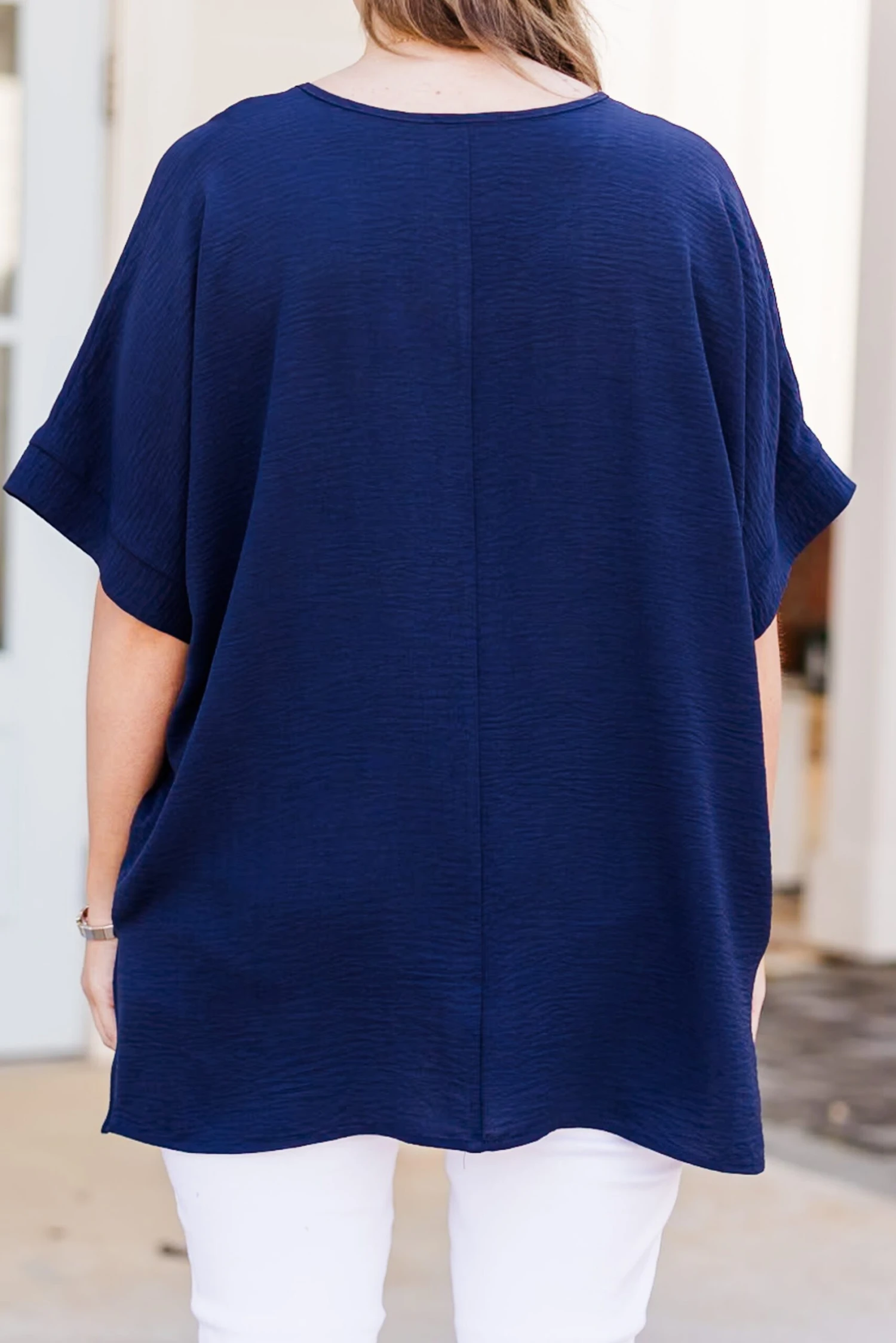 Looking for ways to spice up your weekend style? Our ALL NEW weekend wardrobe is here! This top in navy blue is expertly designed with wrinkle resistant fabric and air flow material for a comfortable and effortless look! Its neutral color makes it perfect for pairing with all of your favorites, while its flattering fit adds an extra touch of flair!