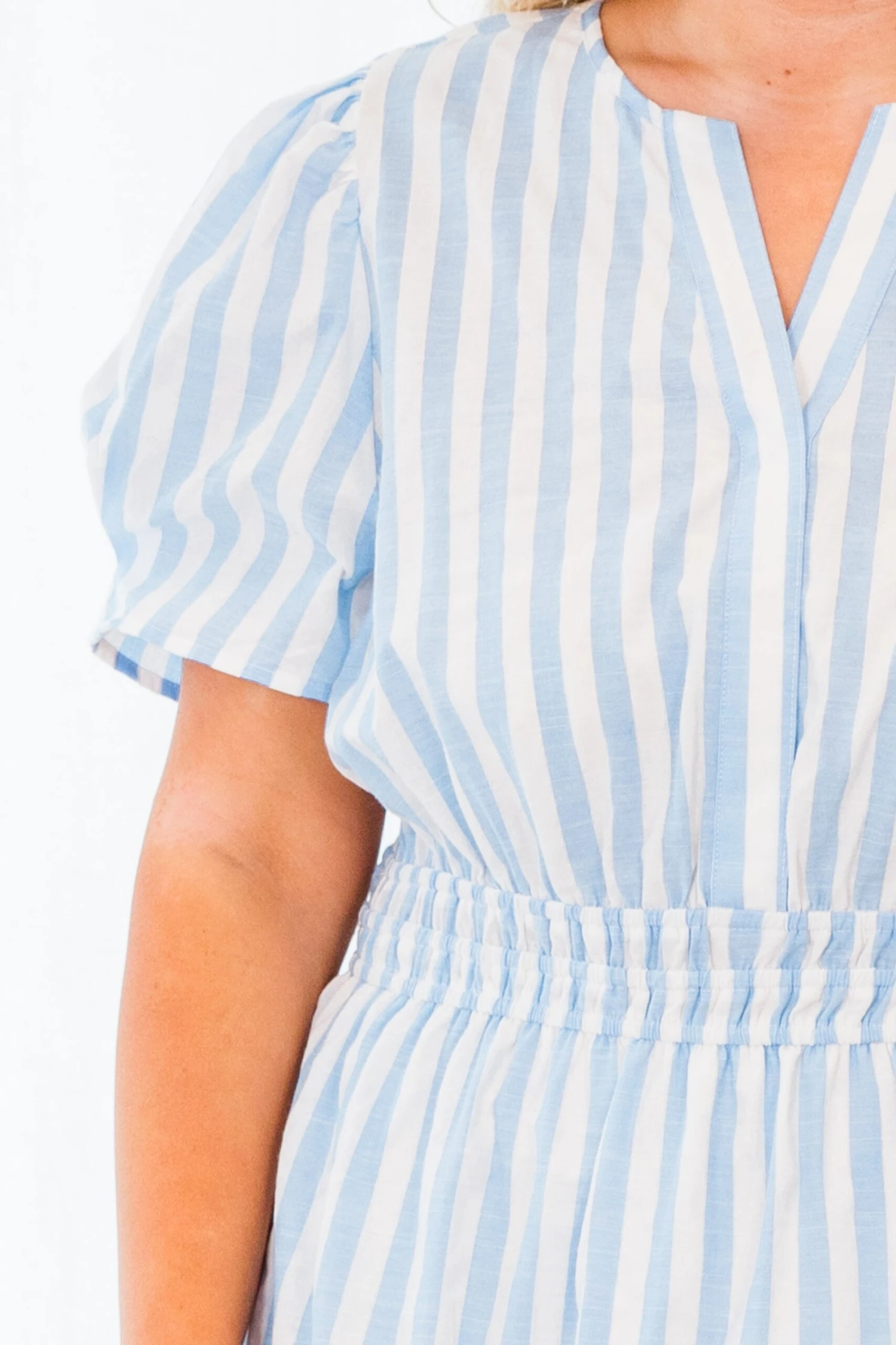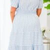 The Well Known Dress in Blue is perfect for any brunch date! The cinched waistline and functional pockets offer both style and convenience, while the stripe pattern adds a fun touch! Don’t miss out on this must-have piece for your wardrobe!