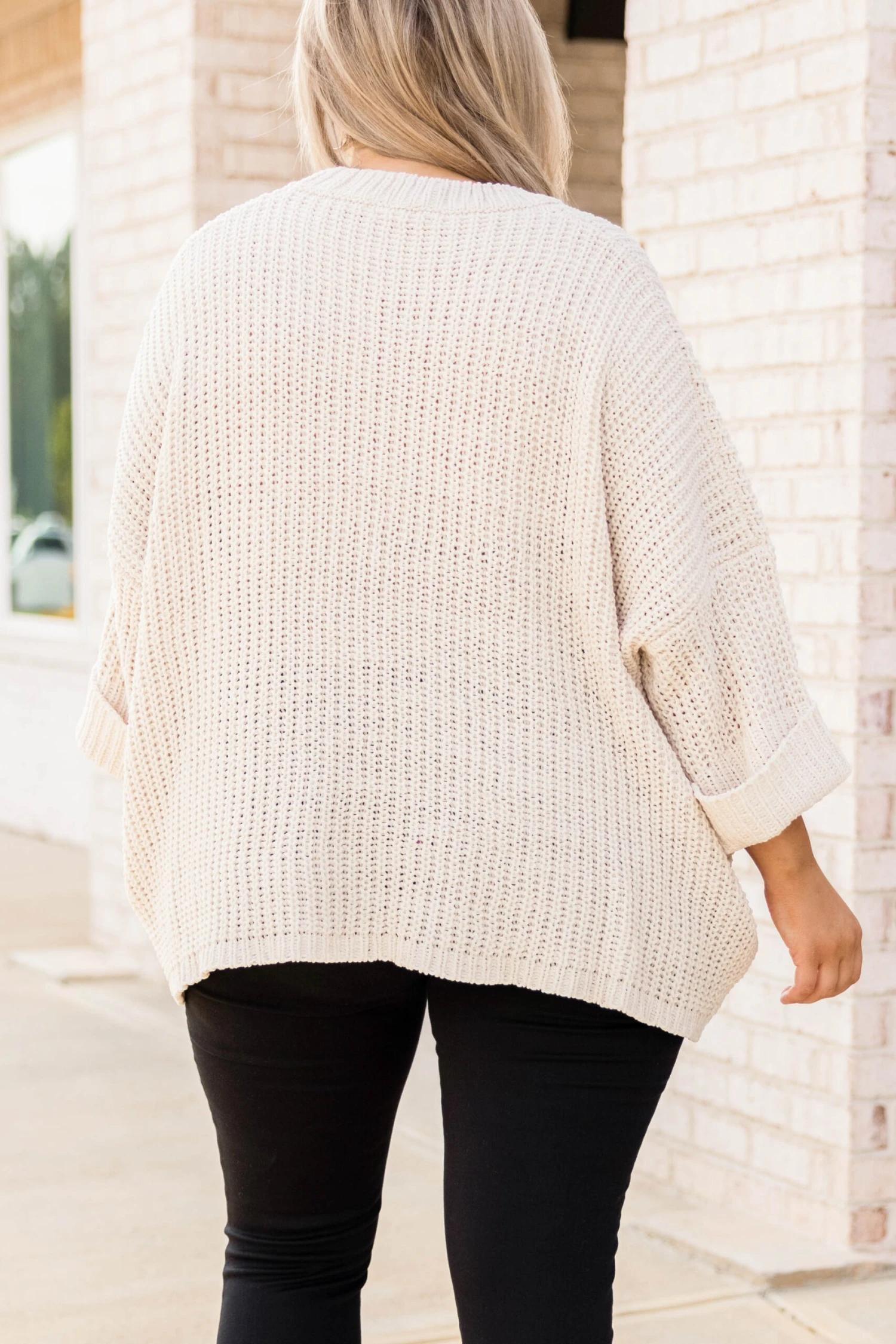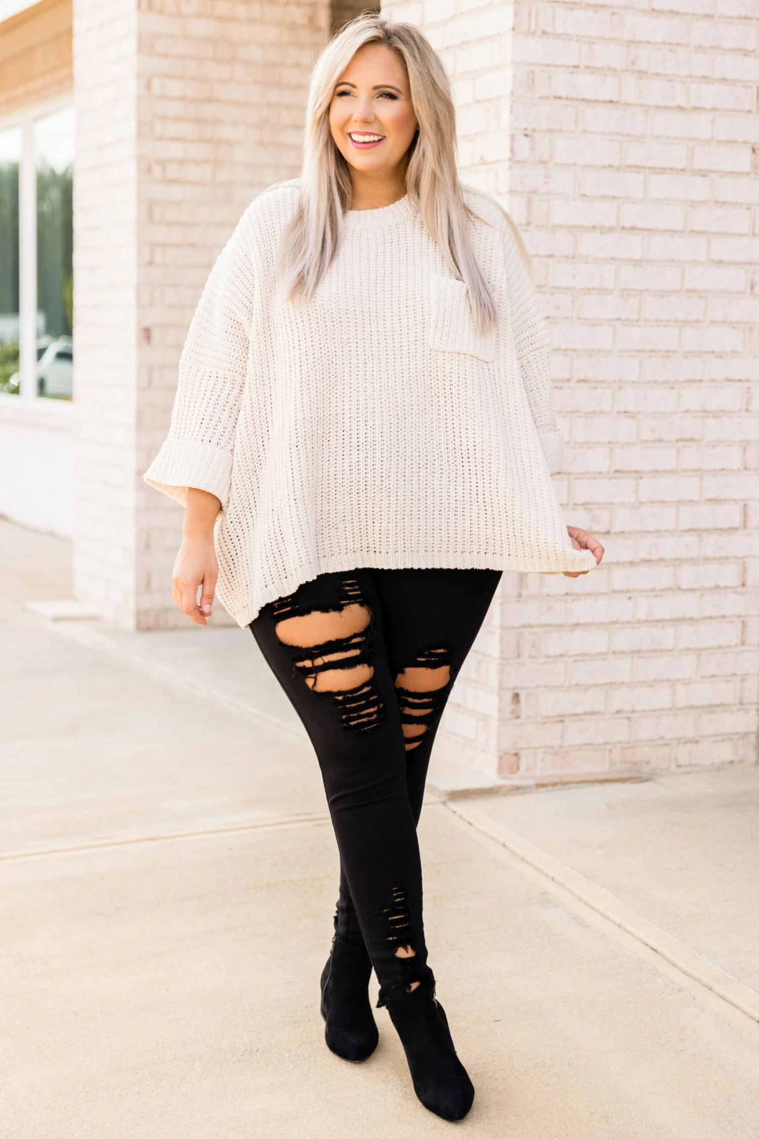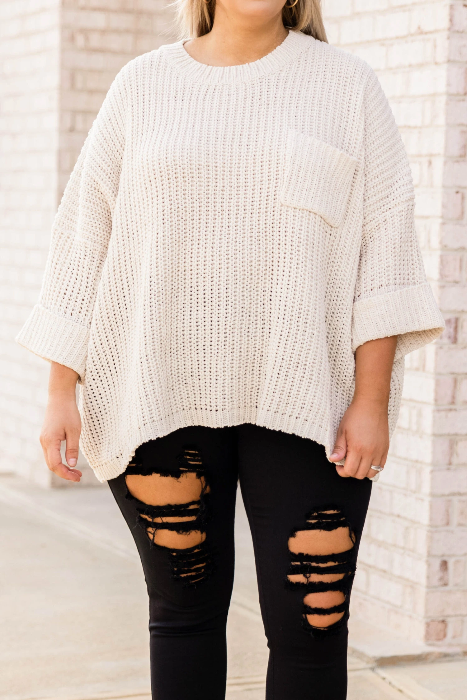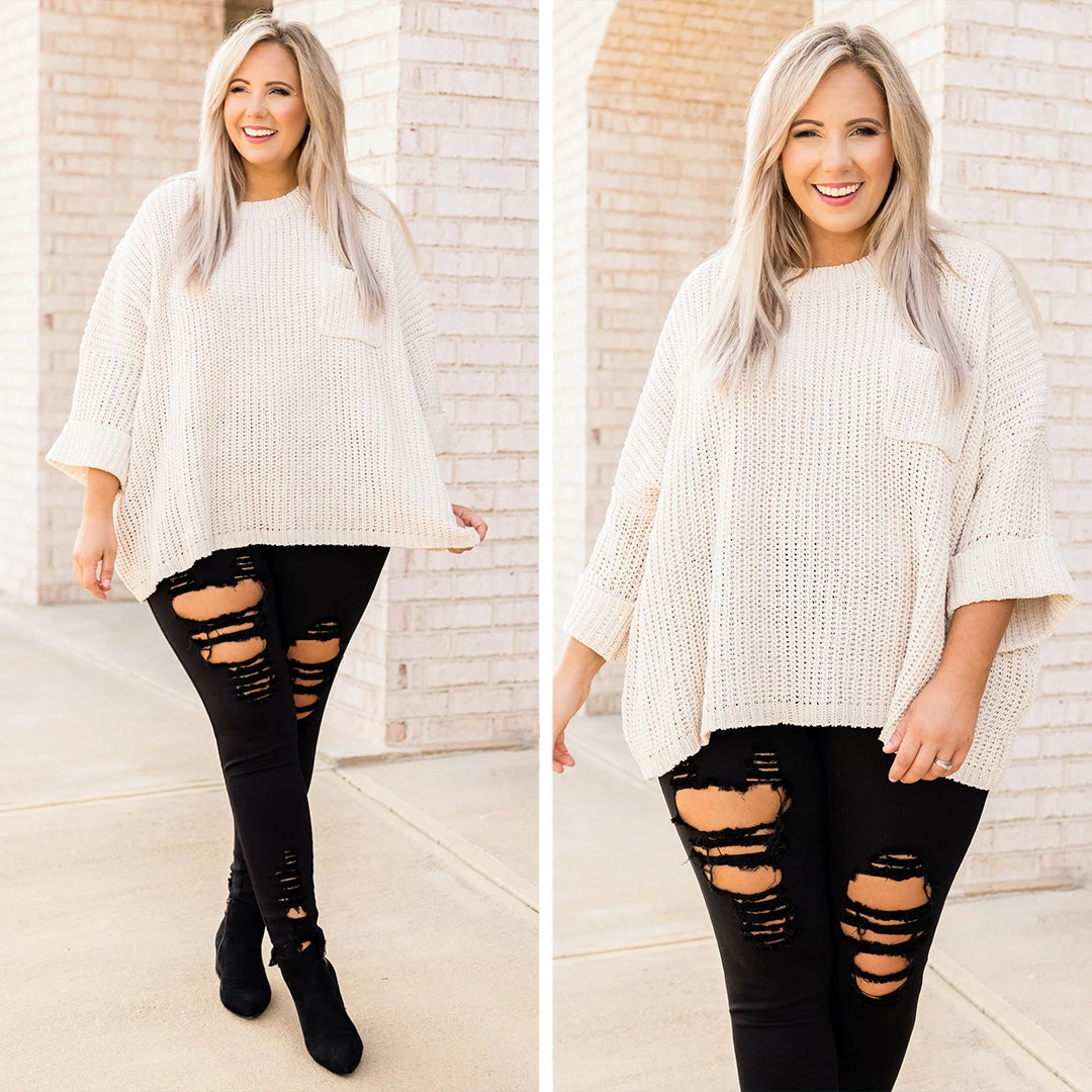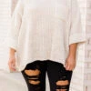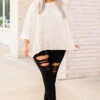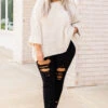 There’s no coming down in this top! We love the chic taupe color and batwing sleeves on this one! It has a figure-flattering fit and is sure to keep you warm all season long! Pair this sweater with skinnies and booties for a trendy winter look!Â