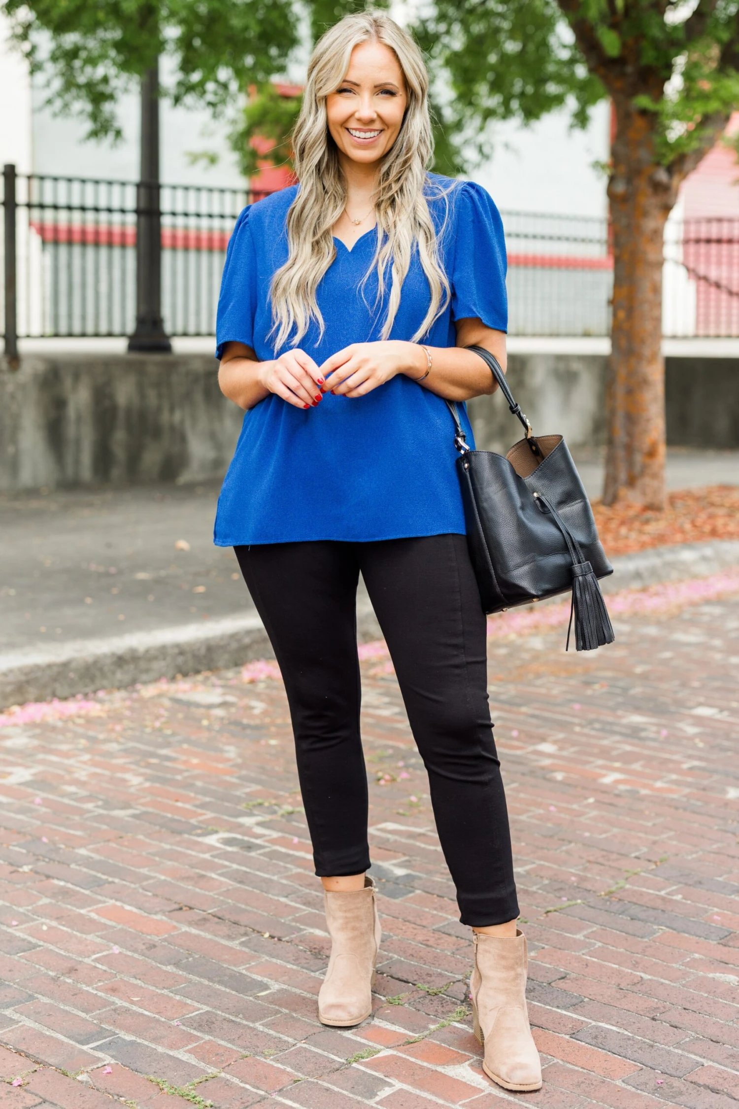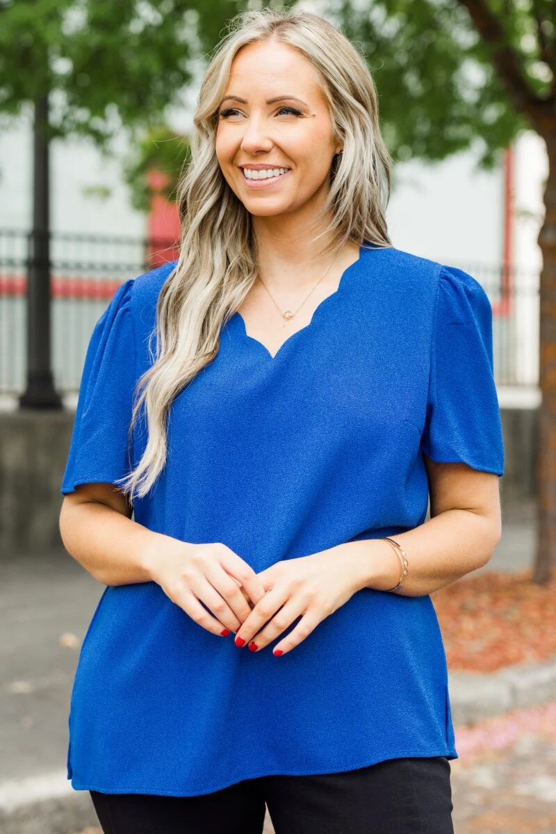 This lovely top is a great addition to your wardrobe! Its timeless scallop neckline and lovely blue color makes it perfect for a day at the office! With ultimate comfort, it’s sure to become a wardrobe staple!