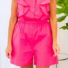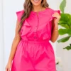 Everyone will want to know what’s happening with you when you step out in this gorgeous romper! The bold hot pink color is adorable and the flirty fit is perfect for for a casual outing or date night! Style it with some cute accessories and heels for the ultimate chic look!