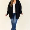 Elevate your wardrobe with our What You Imagine Cardigan in black! This ribbed knitted cardigan offers a versatile and stylish addition to any outfit! Crafted with a relaxed design, it provides both comfort and versatility! Stay warm and chic with this classic staple!