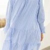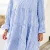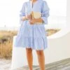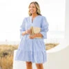 Get ready to impress in this dress! With a playful babydoll silhouette and trendy seersucker fabric, this dress is perfect for any occasion! The split v-neck adds a touch of sophistication while the smocked cuffs and mini bell sleeves give it a fun and flirty vibe! Stand out in style!