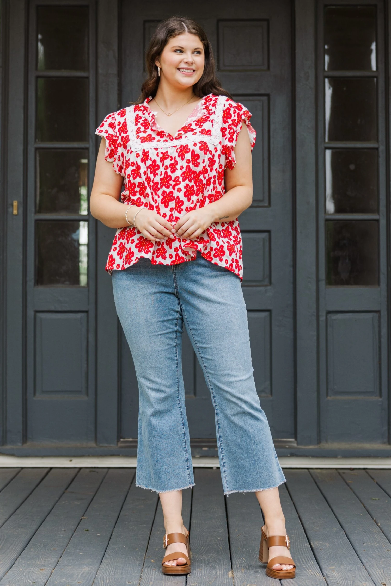 We are so in love with this FAB top! It is a beautiful addition to any wardrobe! Made with delicate lace and finished with flutter sleeves and ruffle detailing, this top is both elegant and on-trend! The textured material adds a touch of sophistication to complete any outfit!
