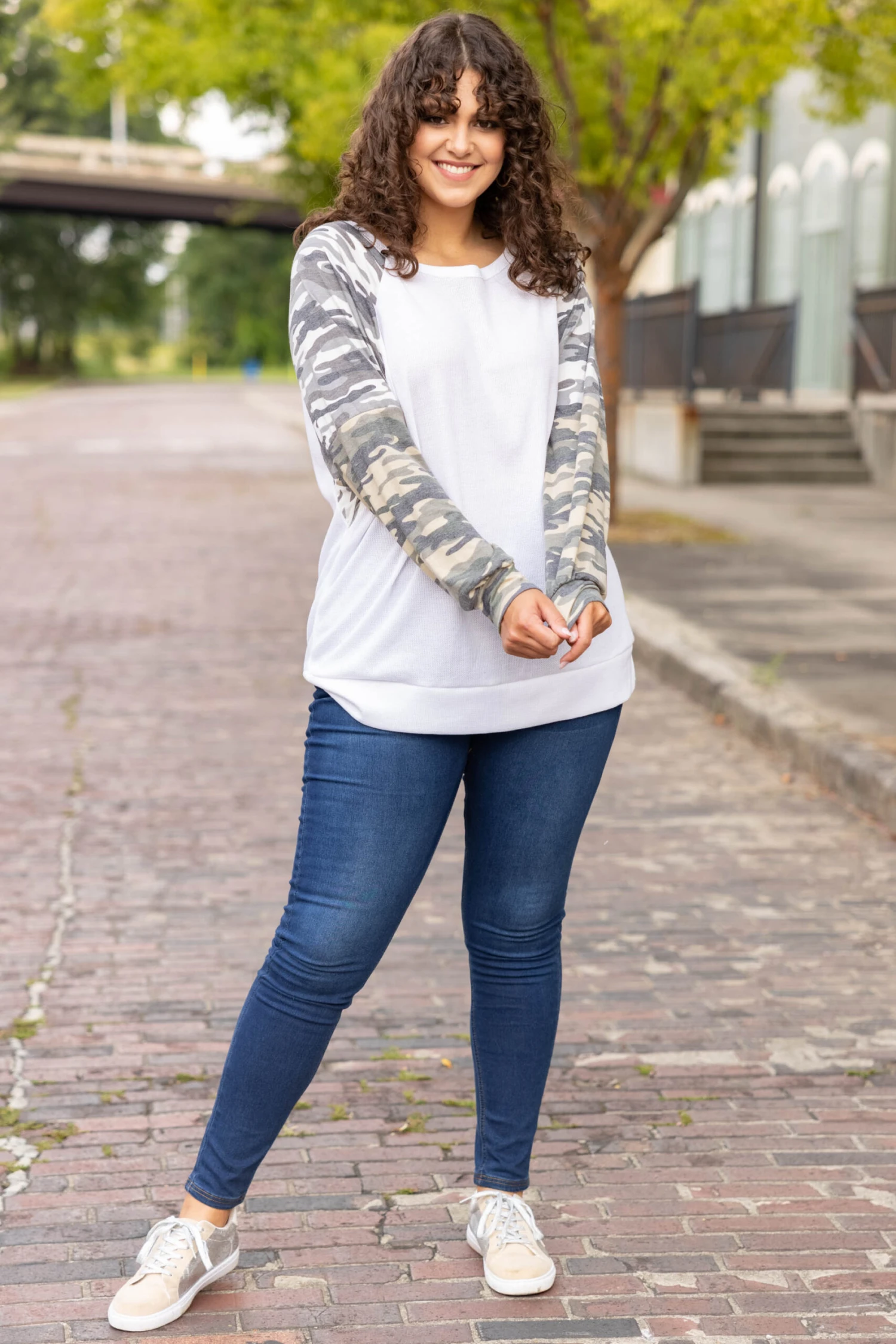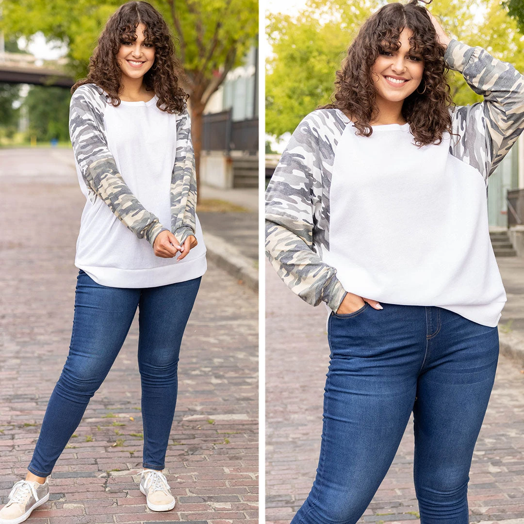 This top will look so good on you queen! It features a solid off-white base with trendy camouflage print detailing we love! It’s comfortable for all-day wear, has a figure-flattering fit, and can be paired with your favorite pieces! Simply, style this top with denim and sandals for an effortlessly chic look!