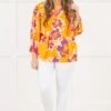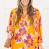 Feel confident and vibrant in this top! Featuring a bold floral print and a flattering v-neck, this top is perfect for any occasion! Let this top be your go-to choice for a pop of color and effortless style!