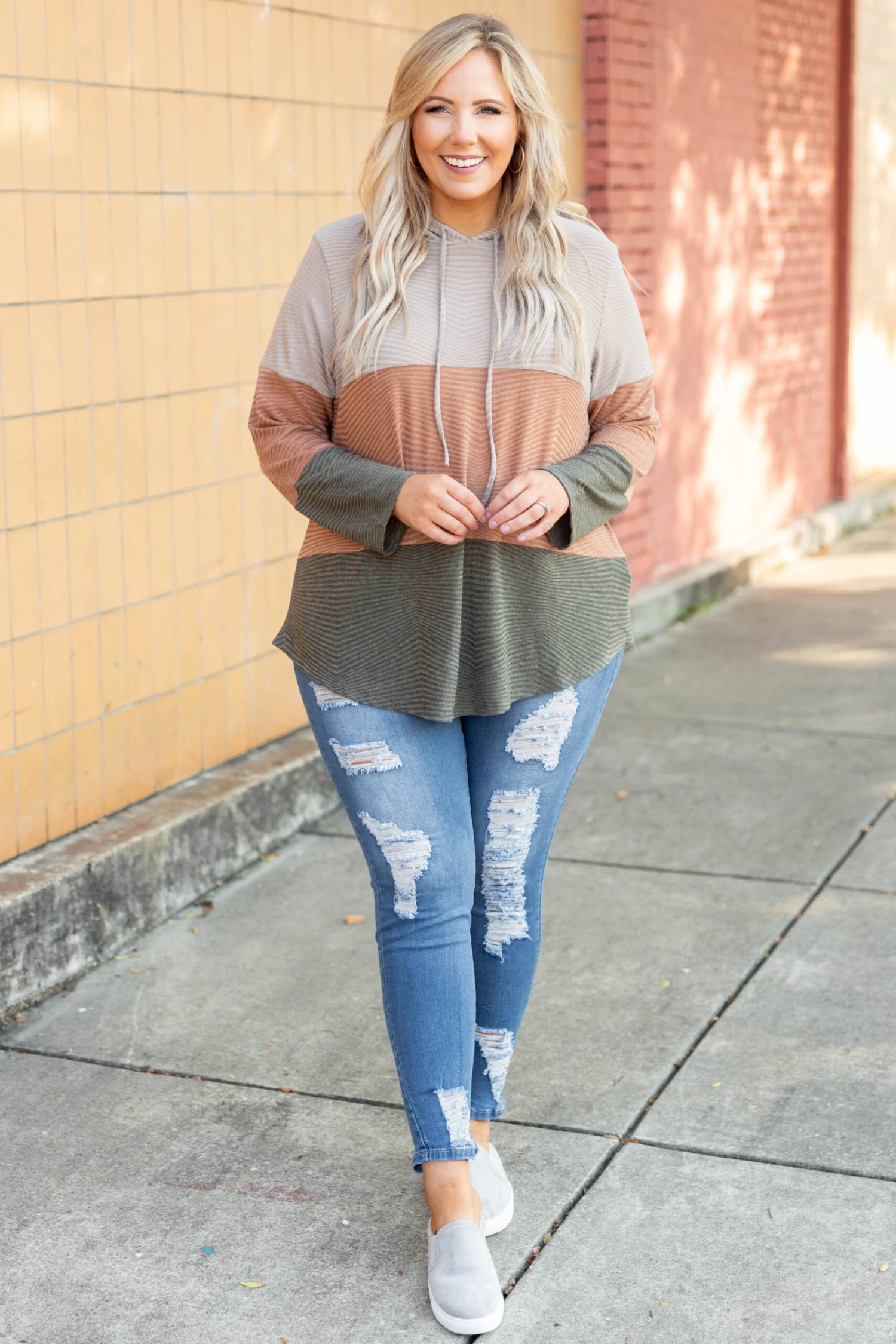This cute and oh-so-comfy hoodie is here to be your new fave! It has a trendy color block style and a hood to keep you extra warm this season! Throw it on any day of the week for a cute and super cozy outfit!