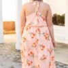 You + this dress = the perfect match! This dress has a beautiful peach color with a floral pattern that is just in time for the season! The halter design and figure flattering fit is perfect for any occasion! Pair this beauty with some wedges and cute accessories for an unforgettable chic look!