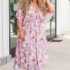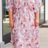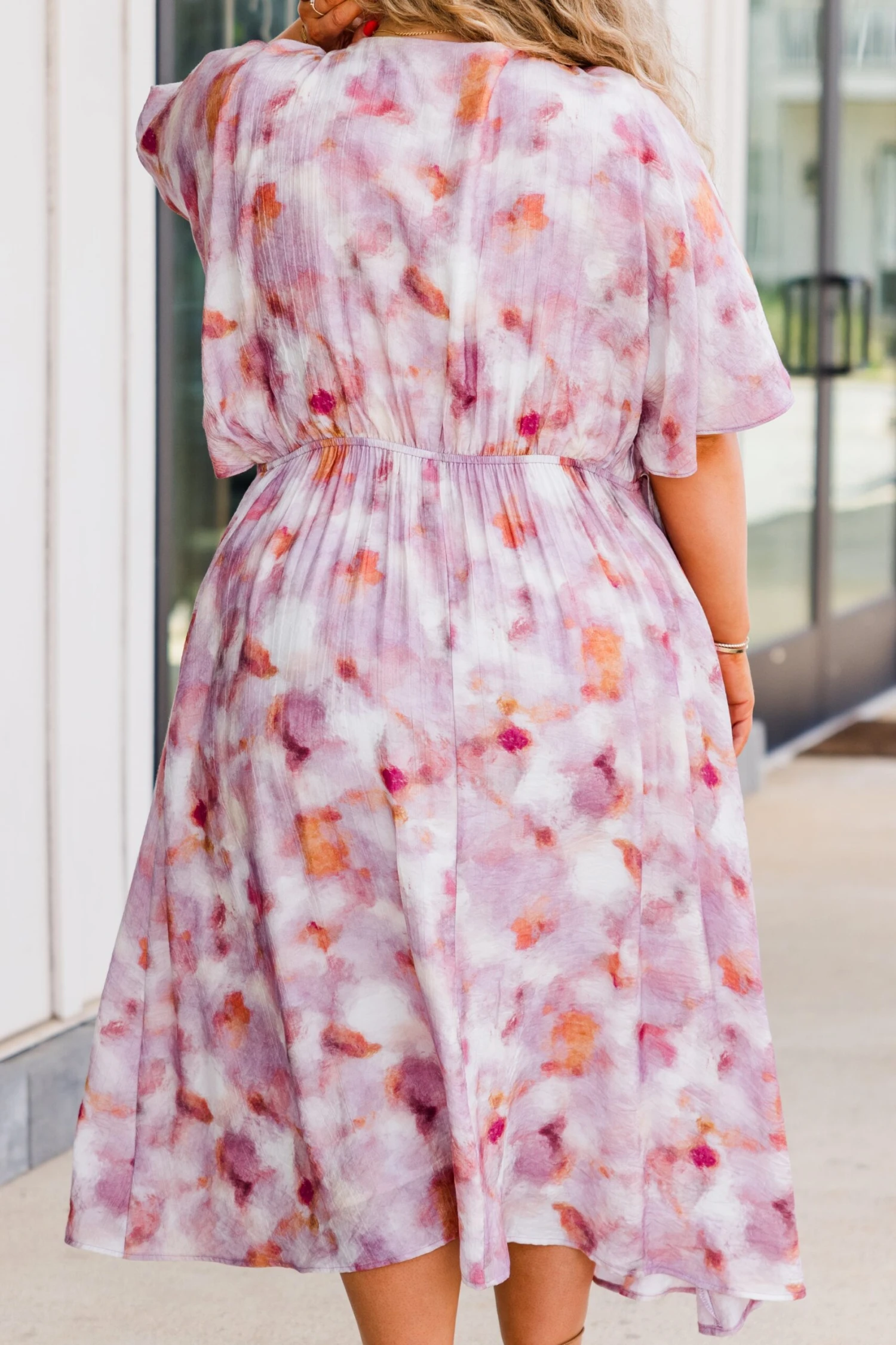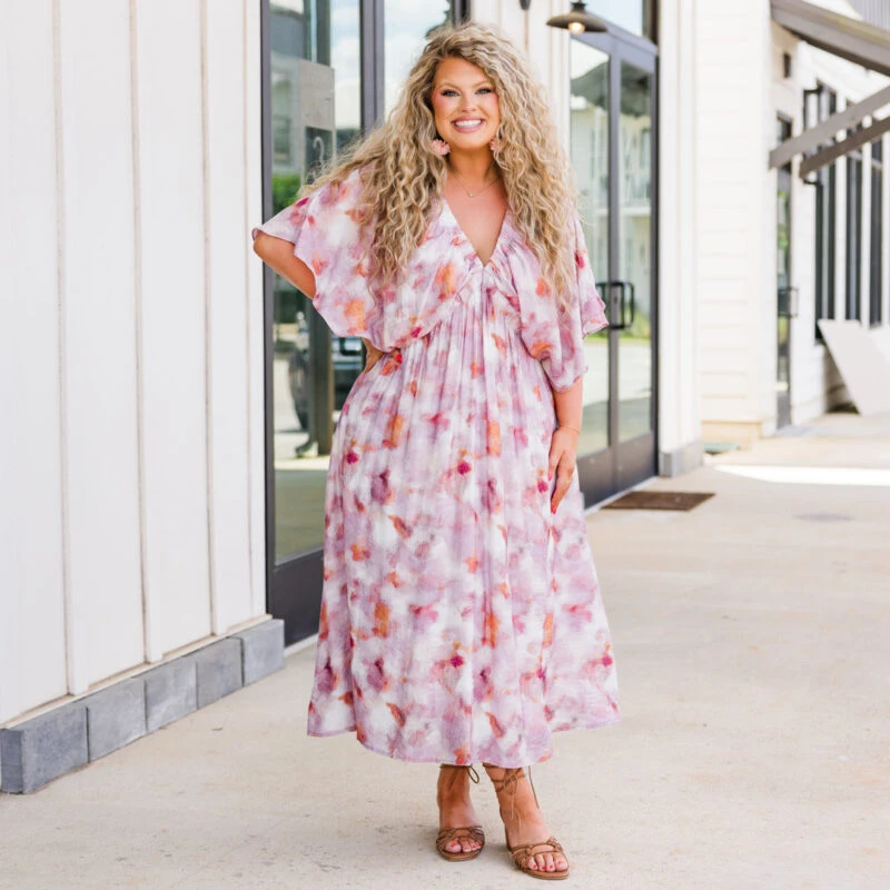 Get lost in a whirl of daydreams with this dress! This dreamy dress features a beautiful watercolor print, an elastic v-neck, and draped sleeves for a comfortable and flattering fit! The elastic waistline and side pockets add convenience and functionality to this ethereal dress!