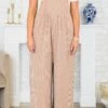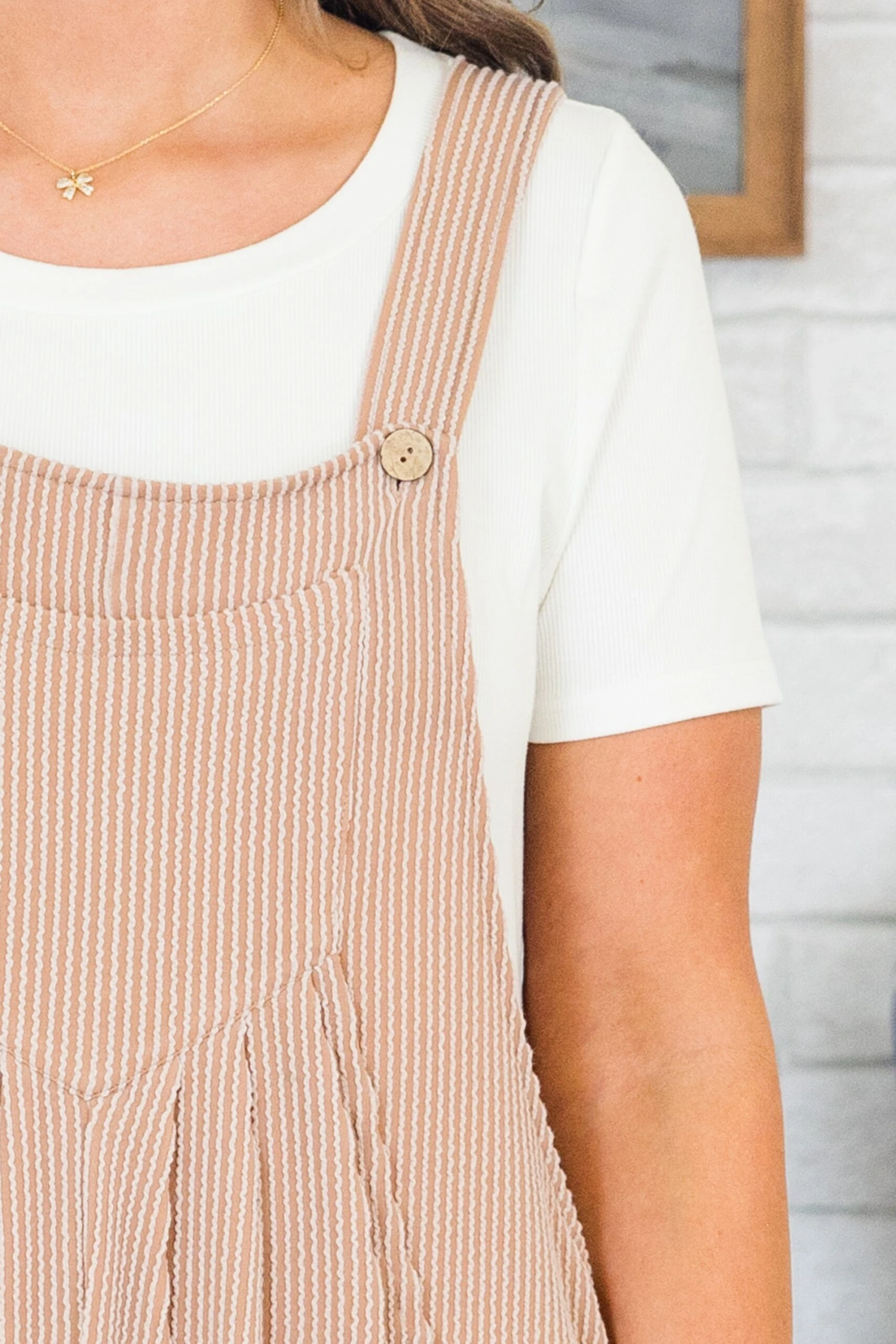 Get ready to be amazed by our Whirlwind Wonder jumpsuit! The button sling adjustable straps provide a customizable fit, while the textured knit fabric adds a touch of sophistication! Plus, with the added convenience of pockets, this mocha jumpsuit is both stylish and functional! Upgrade your wardrobe today!