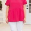 If you are looking for the perfect top for the season, your search is over! This top has a bold hot pink color with a babydoll design that is a season favorite! This top is so easy to pair with all of your favorite bottoms and accessories! Dress it up with a cute accessories and skinnies or keep it casual with some cute leggings and sandals for an everyday chic look!