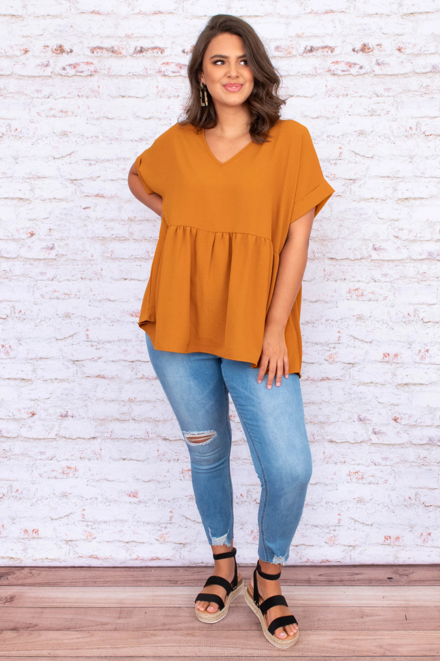 Expect many wide-eyed gazes when you’re wearing this top! This top has a sleek design with a pretty color you can dress up or down and style for every occasion! It’s comfortable for all day wear, has a figure-flattering baby doll fit, and features the cutest cuffed-sleeves for the ultimate trendy look! Simply, style this top with skinnies and booties for an easy everyday outfit!Â