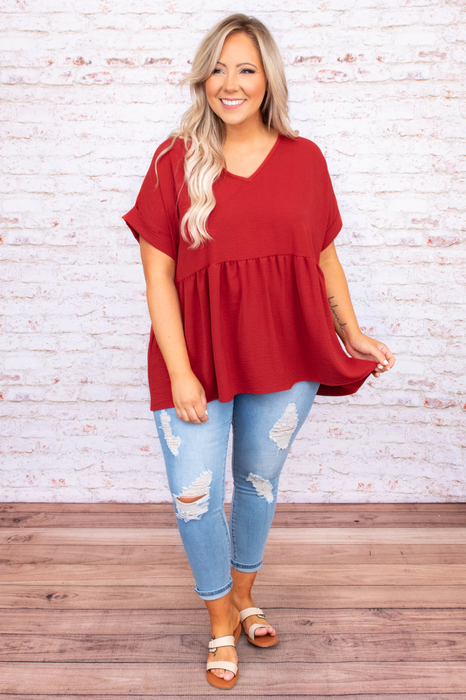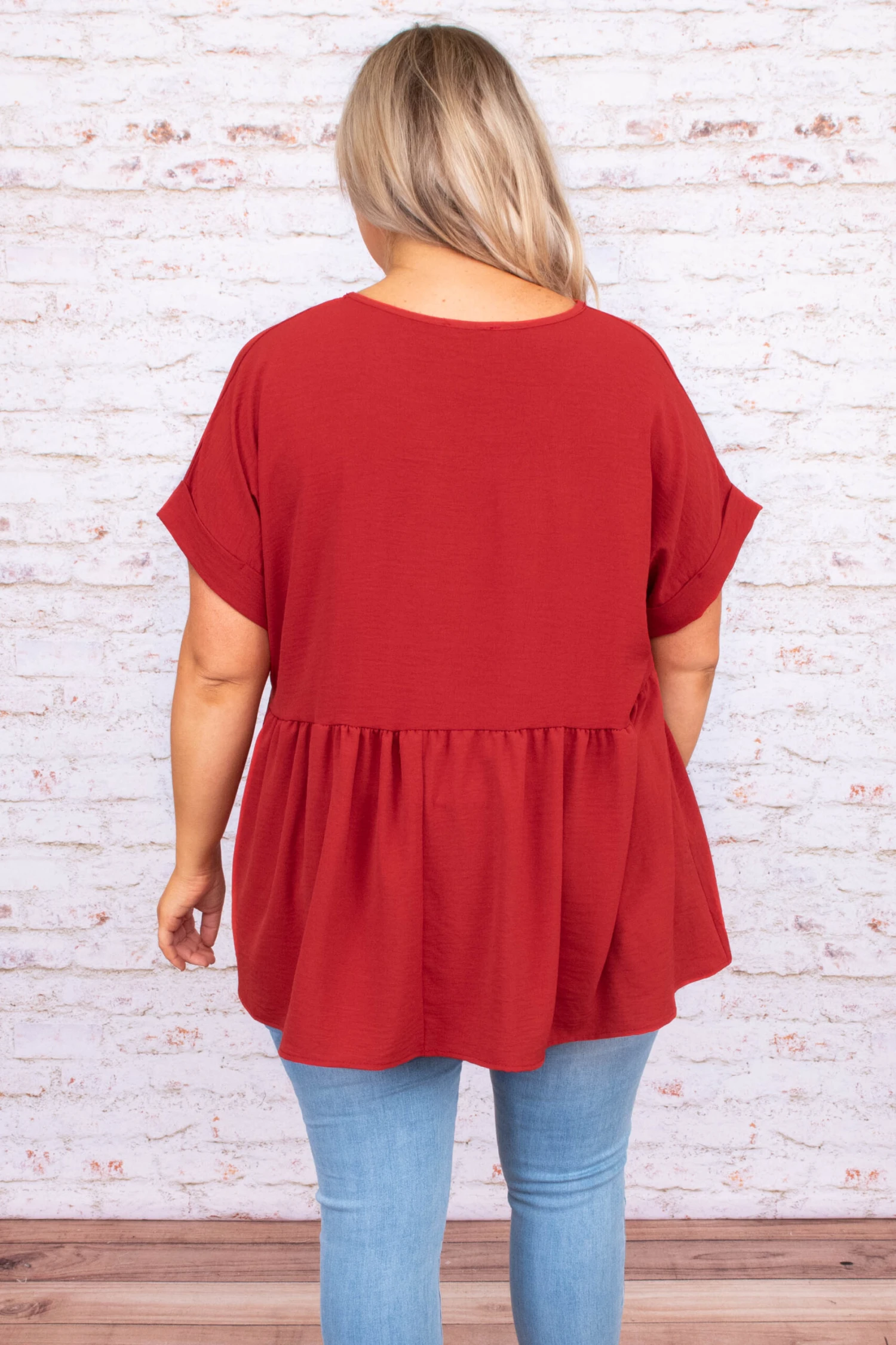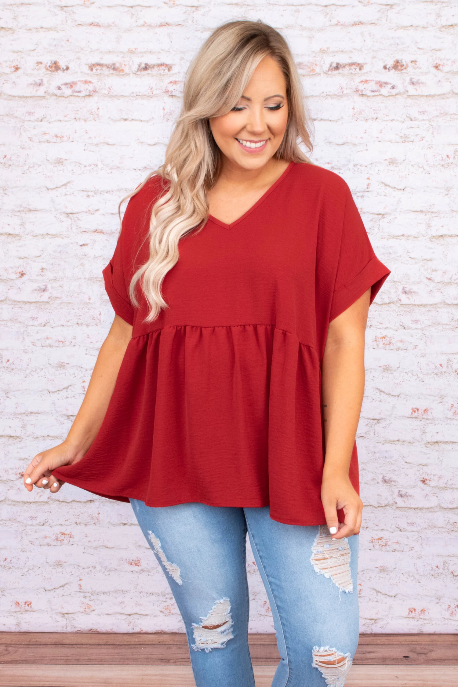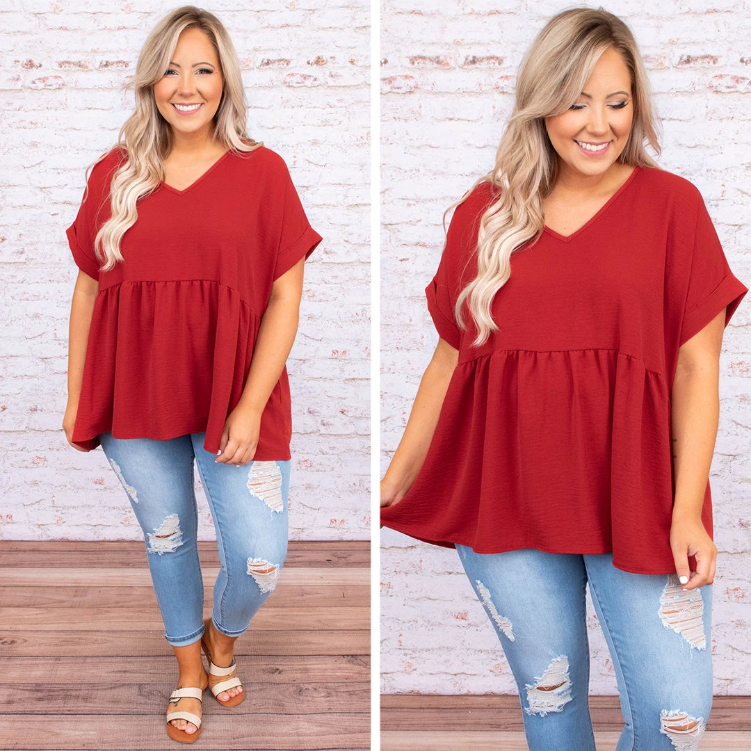 Expect many wide-eyed gazes when you’re wearing this top! This top has a sleek design with a pretty color you can dress up or down and style for every occasion! It’s comfortable for all day wear, has a figure-flattering baby doll fit, and features the cutest cuffed-sleeves for the ultimate trendy look! Simply style this top with skinnies and booties for an easy everyday outfit!Â