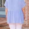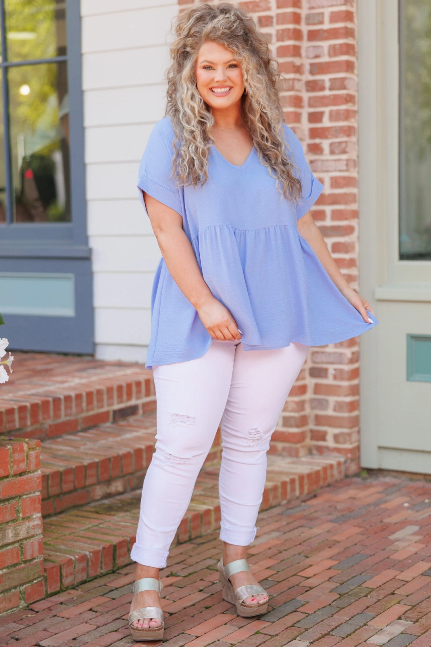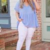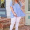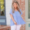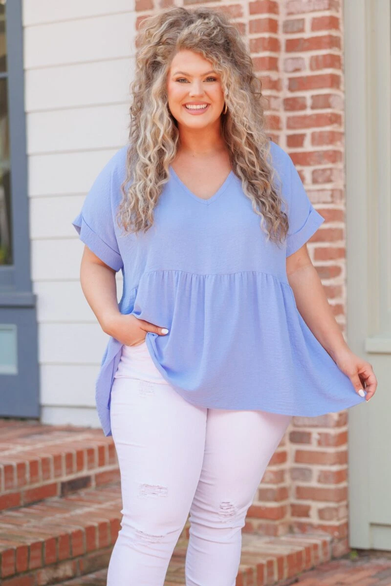 Expect many wide-eyed gazes when you’re wearing this top! This top has a sleek design with a pretty dusty blue color you can dress up or down and style for every occasion! It’s comfortable for all day wear, has a figure-flattering baby doll fit, and features the cutest cuffed-sleeves for the ultimate trendy look! Simply, style this top with skinnies and sandals for an easy everyday outfit!Â