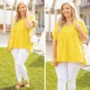 Expect many wide-eyed gazes when you’re wearing this top! This top has a sleek design with a pretty color you can dress up or down and style for every occasion! It’s comfortable for all-day wear, has a figure-flattering baby doll fit, and features the cutest cuffed-sleeves for the ultimate trendy look! Simply, style this top with white skinnies and wedges for an easy everyday outfit!