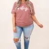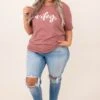 Update your status with this shirt! This trendy tee has a simple graphic design with neutral colors you can pair with everything in your wardrobe! It’s comfortable for all-day wear, has a flowy fit to flatter your figure, and is perfect for the season! Style this top with skinnies or shorts for a fun and flirty look!Â