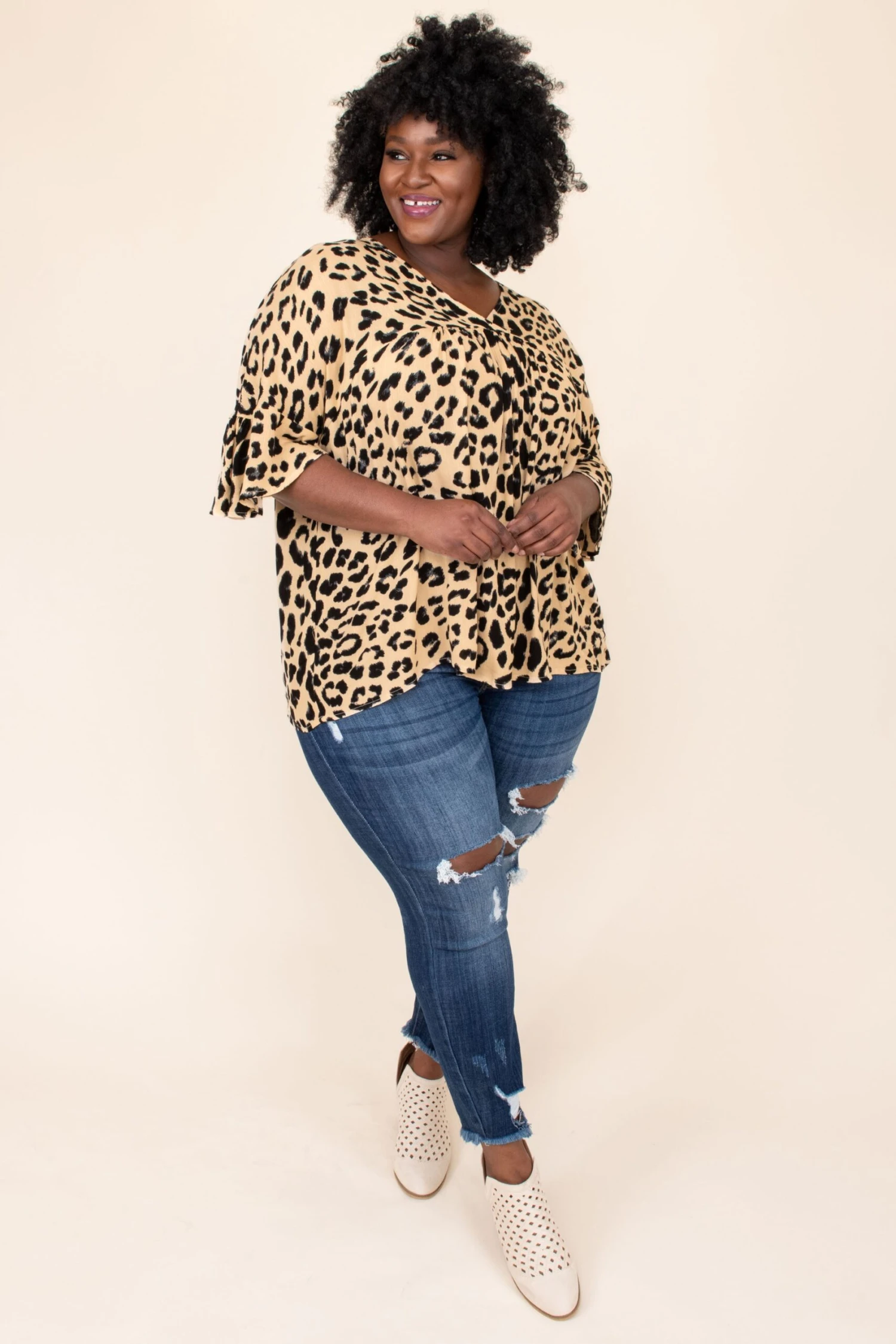 Be wild and proud in this fierce top! This top has a trendy leopard print with neutral colors you can style for every occasion! It’s comfortable for all-day wear, has an oversized fit, and features a baby doll design for the ultimate look! Pair this top with skinnies and booties for an easy everyday outfit!Â