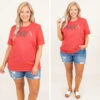 We are wild for this top! The red color is bold and fierce and the USA graphic is so cute! Style this with jean shorts and sandals for a super fab casual look!Â