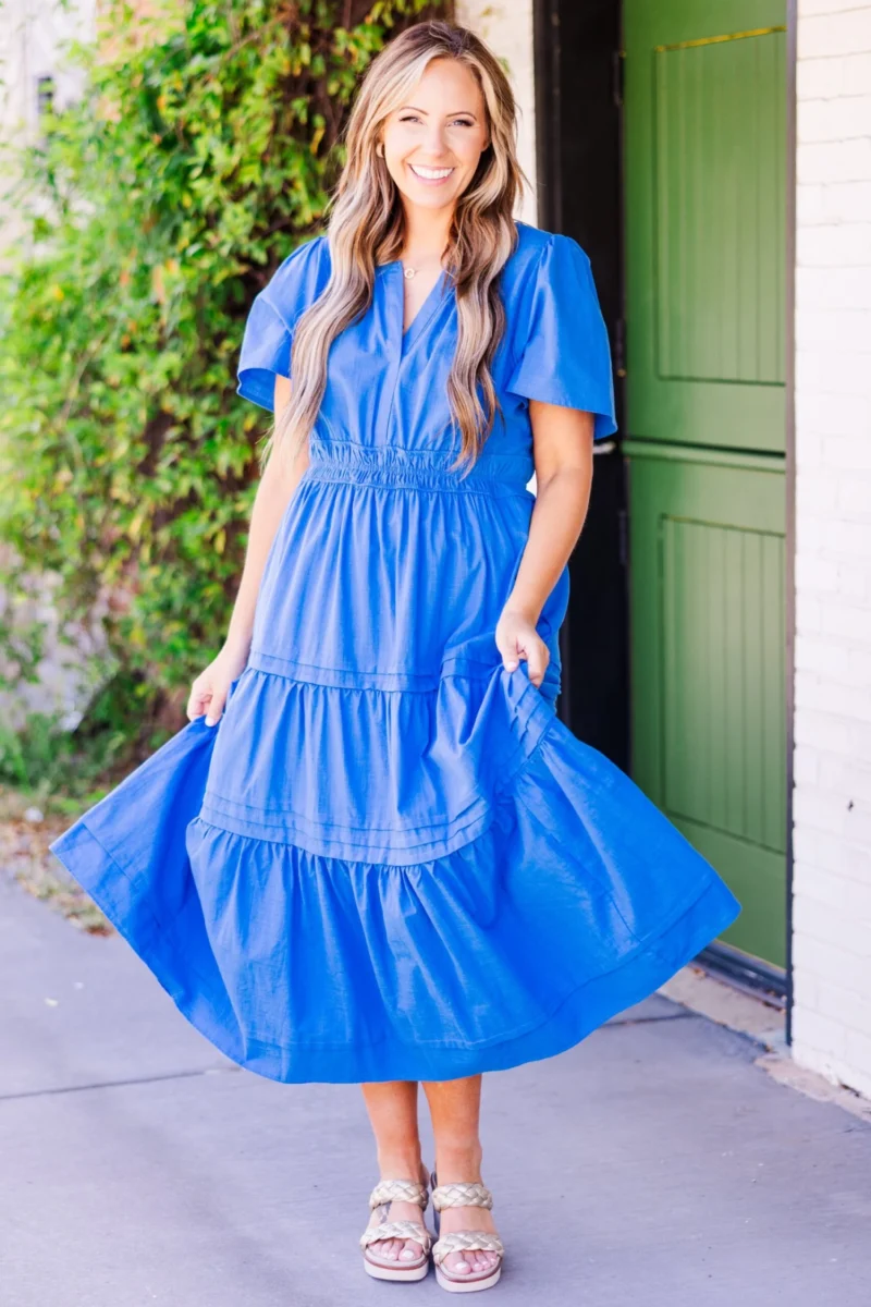Effortlessly elevate your style with this lovely blue dress! The cinched waistline accentuates your figure while the textured material adds subtle detail! Versatile and chic, this dress is perfect for a casual day out!
