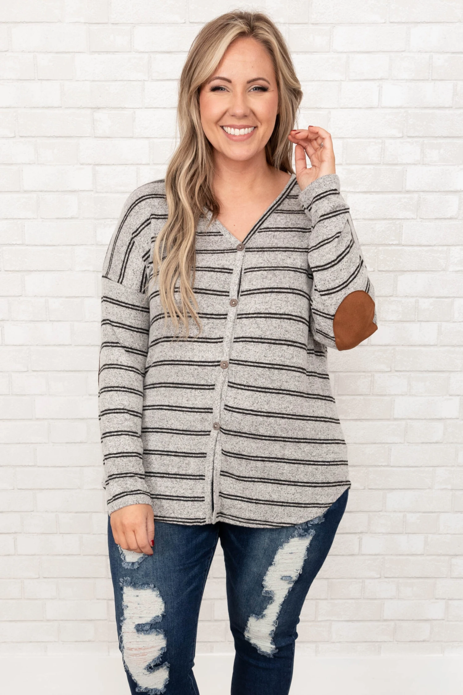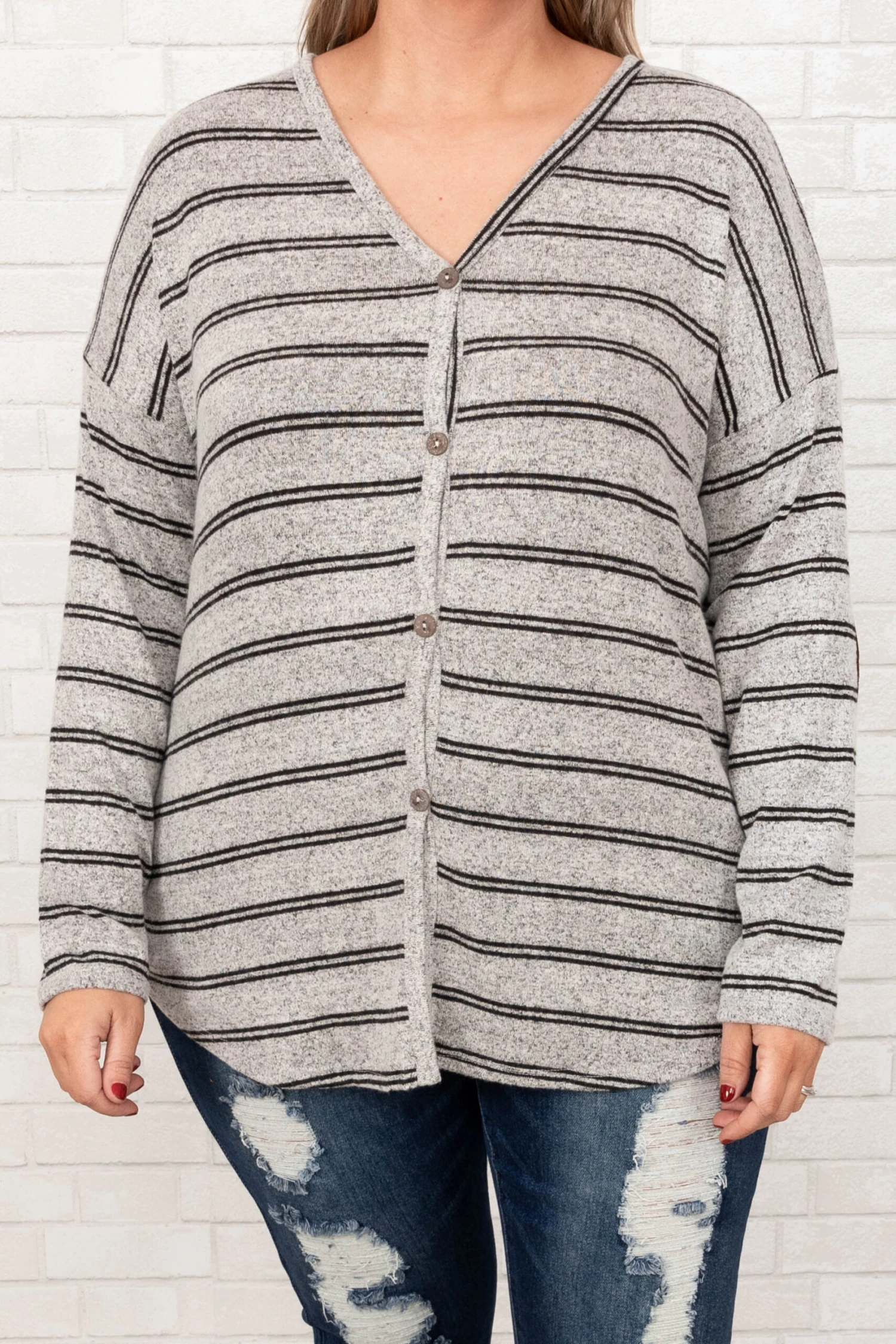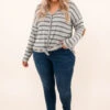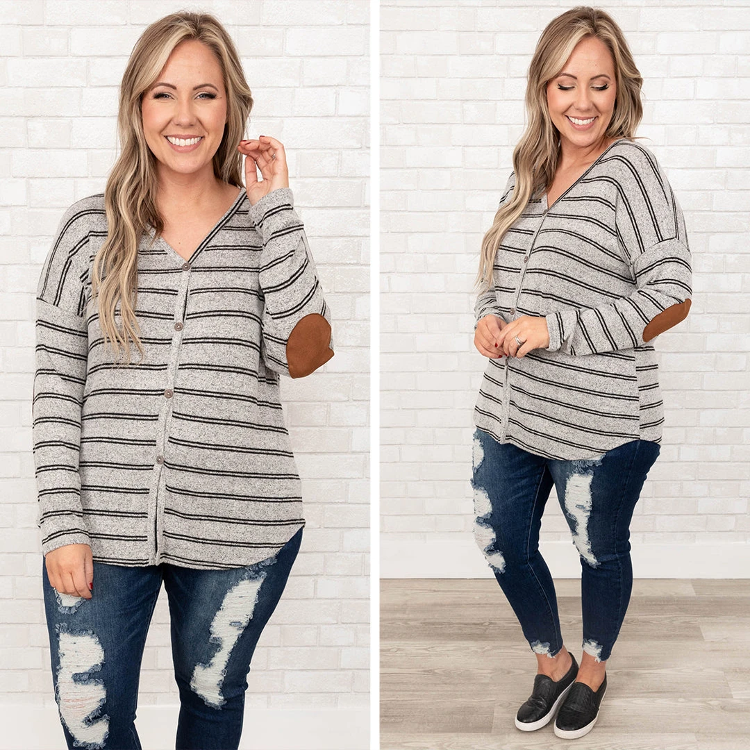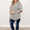 Get this top today! This top has a stripe pattern you can dress up or down and style for every occasion! It’s comfortable for all-day wear, has a relaxed fit to flatter your figure, and is perfect for the season! Pair this top with skinnies and boots for an effortlessly chic look!Â