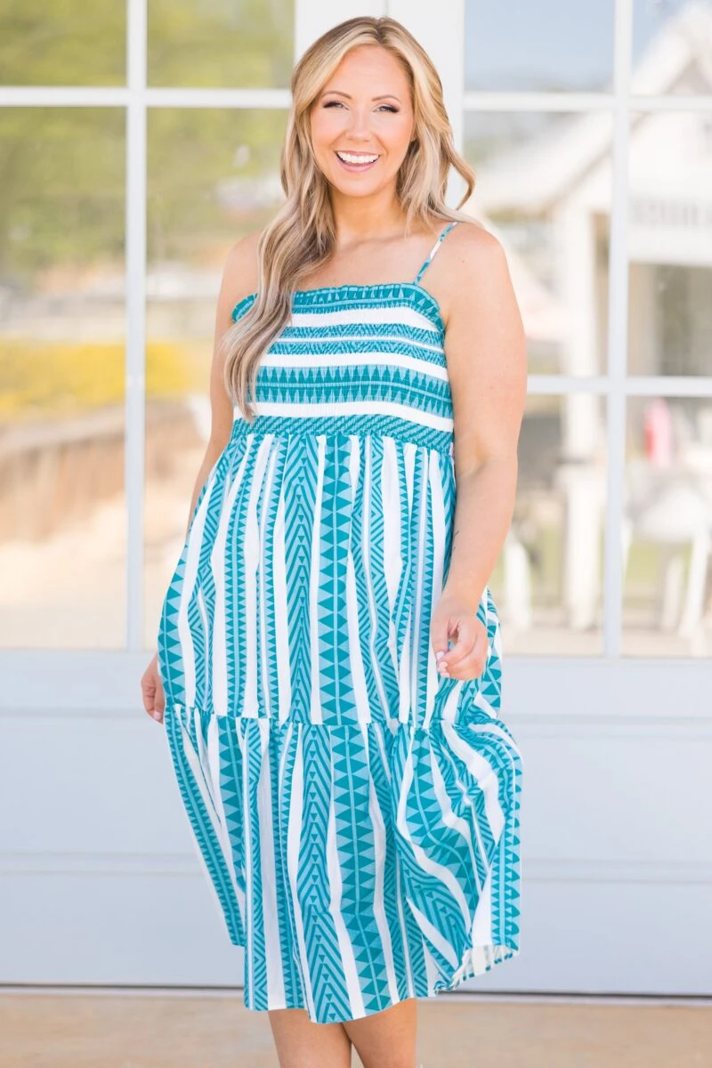 This dress is everything you’ve been wishing for and more! It is a fun and eye-catching choice for special occasions! Made from fine fabric with a smocked bodice and stylish Aztec pattern, it offers a flattering, flowy design that gives you the perfect silhouette!