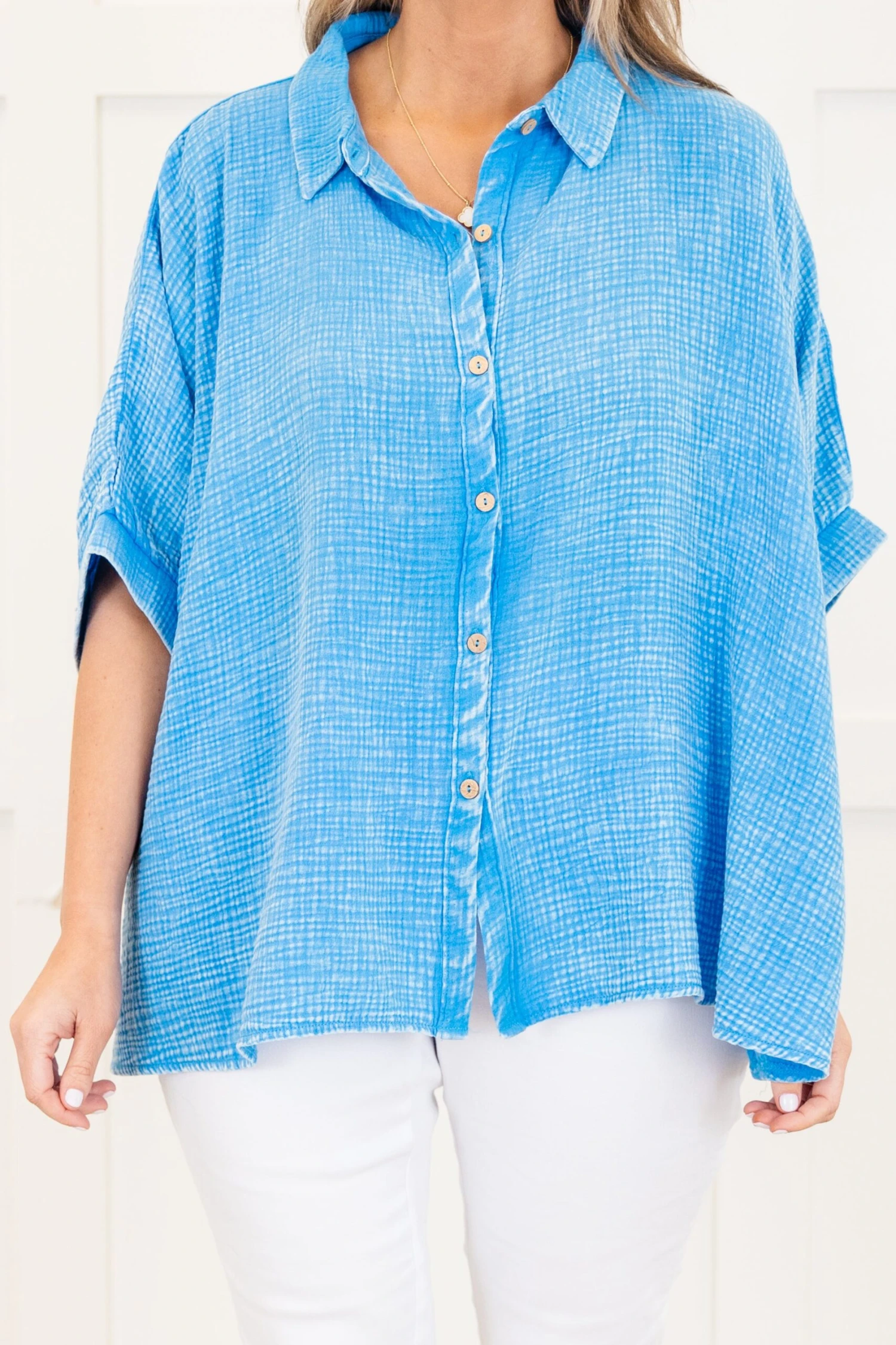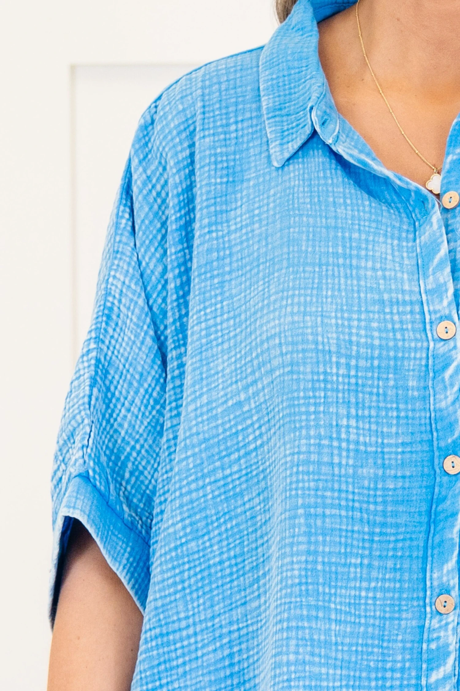 Unleash your carefree spirit in our Wistful Weekend Top! Crafted from washed double gauze, this button down shirt features half sleeves for a laid-back vibe! Perfect for a relaxed weekend look, it’s time to embrace your inner cool in ash black!