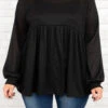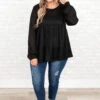 Grab this cutie for your next brunch date with the girls! This top has a classic black color and a trendy babydoll design that is so chic! The stretchy, figure flattering fit is so easy to pair with all of your faves! Simply style this top with skinnies or patterned pants for a classic chic look!
