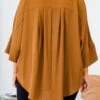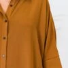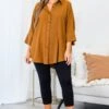This brown three quarter length sleeve button up top is perfect for the hardworking babe on the go! The collar detail and cuff sleeves add a touch of sophistication to any outfit! Pair with your favorite pants or leggings and some booties for a stylish yet comfortable look!