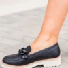 Conquer the workday in this FAB loafers! They are a must-have for any busy woman! The slip-on design allows for easy and quick wear, while the chain detail adds a touch of elegance! Its neutral black color pairs perfectly with all your favorite outfits, making it a versatile and stylish addition to your wardrobe!