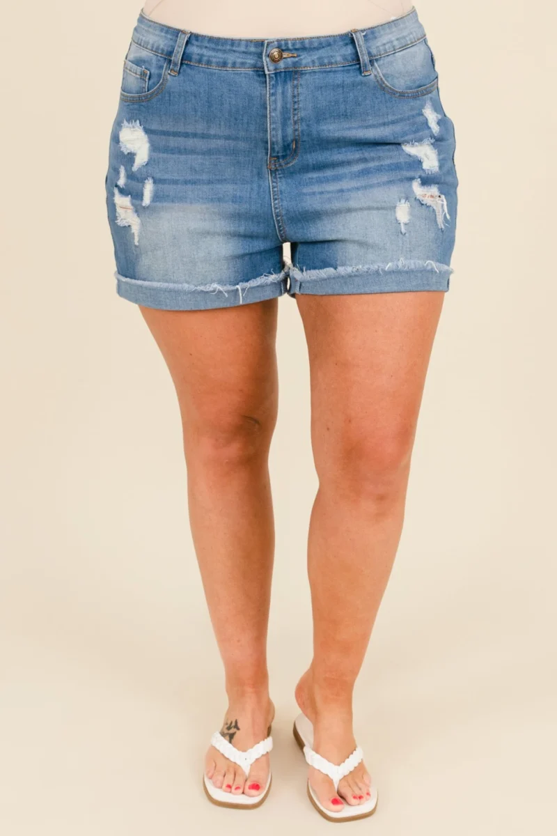 Gain a stylish edge with these amazing shorts! Featuring a distressed design with trendy medium wash, these shorts offer a flirty length and comfy fit! Show off your trend-forward style with these modern shorts!