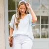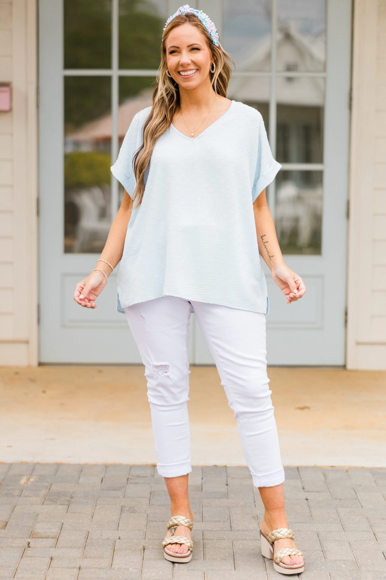 Elevate your style with this gorgeous top! Featuring a lovely airy blue color and raised polka dot pattern, this top adds a classy touch to any outfit.! Versatile for any occasion, it’s the perfect addition to your wardrobe!