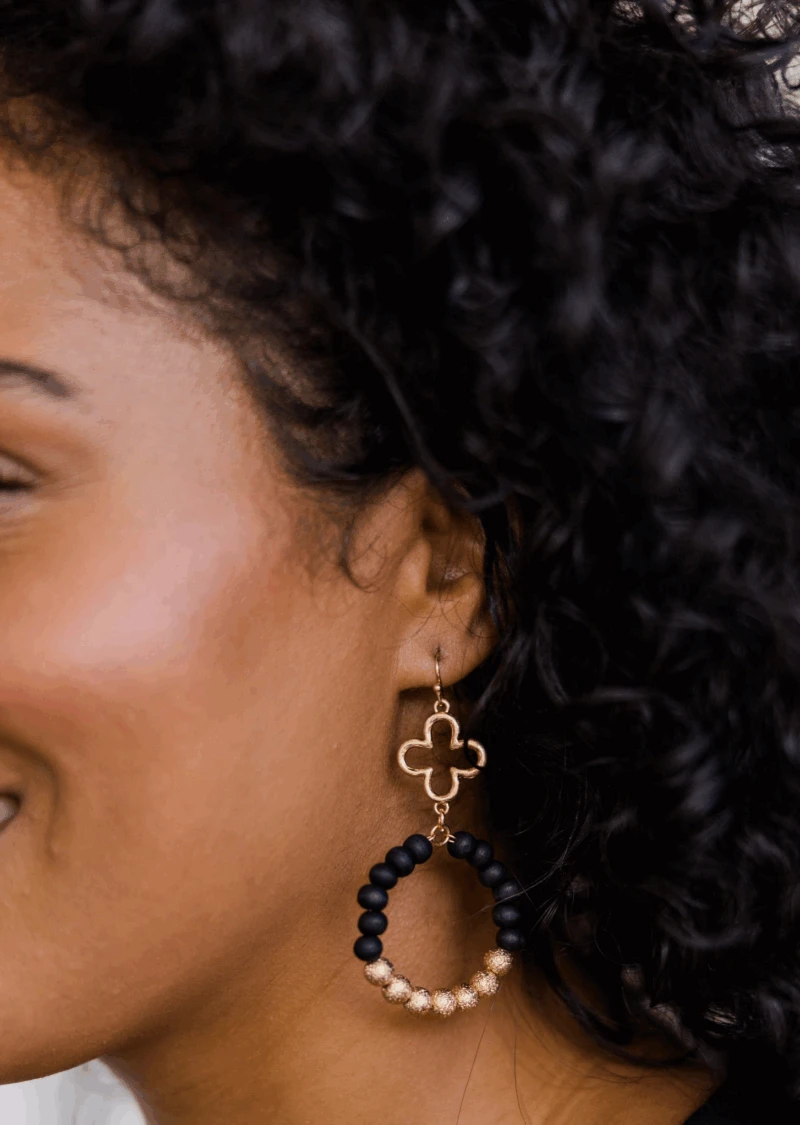Unleash your lucky side with the Wrapped In Clover Earrings! These playful drop earrings feature beads in classic black and gold, making them the perfect accessory for any occasion! Don’t leave your style to chance, grab a pair today!