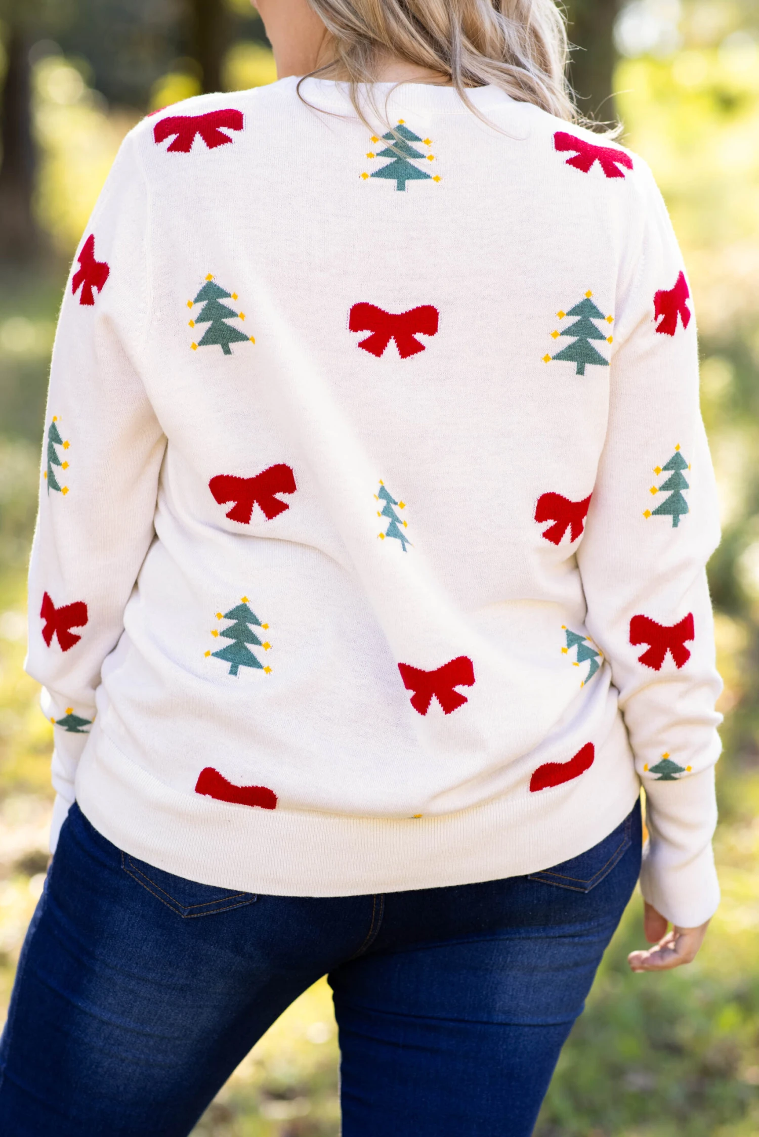 We love this holiday sweater! It’s perfect for the holiday season! This sweater is it, and we love how festive it is! It features a knit holiday design that is too cute for words! This sweater is perfect for all of your holiday activities, figure-flattering, and perfect for all-day wear! Simply pair this sweater with your favorite jeans and booties for a fun holiday look!