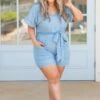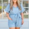 Achieve effortless style with this fabulous romper! Crafted with denim, it includes a waist tie for added definition, functional pockets, and a figure flattering fit! Put it all together for an on-trend look that is perfect for any occasion!