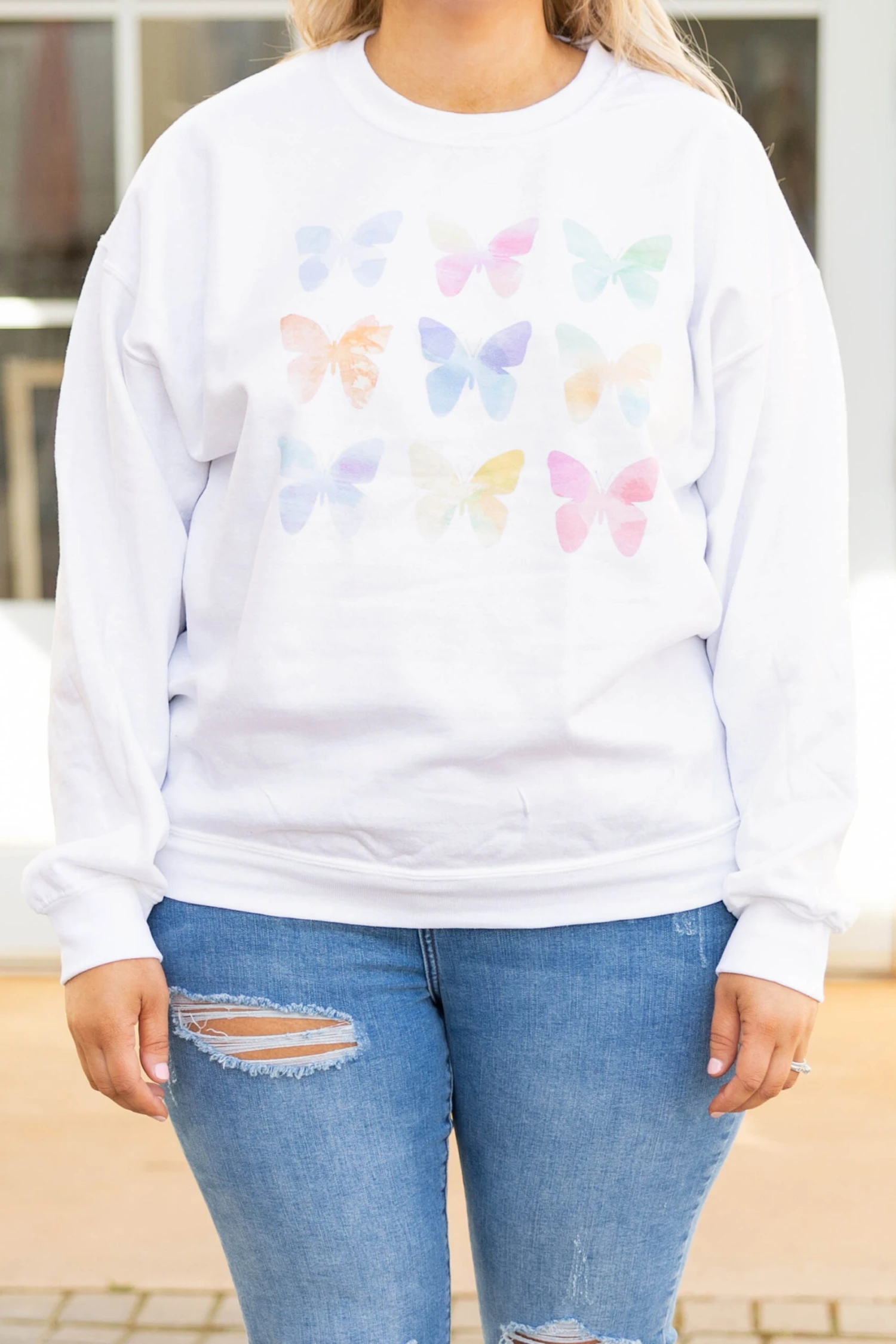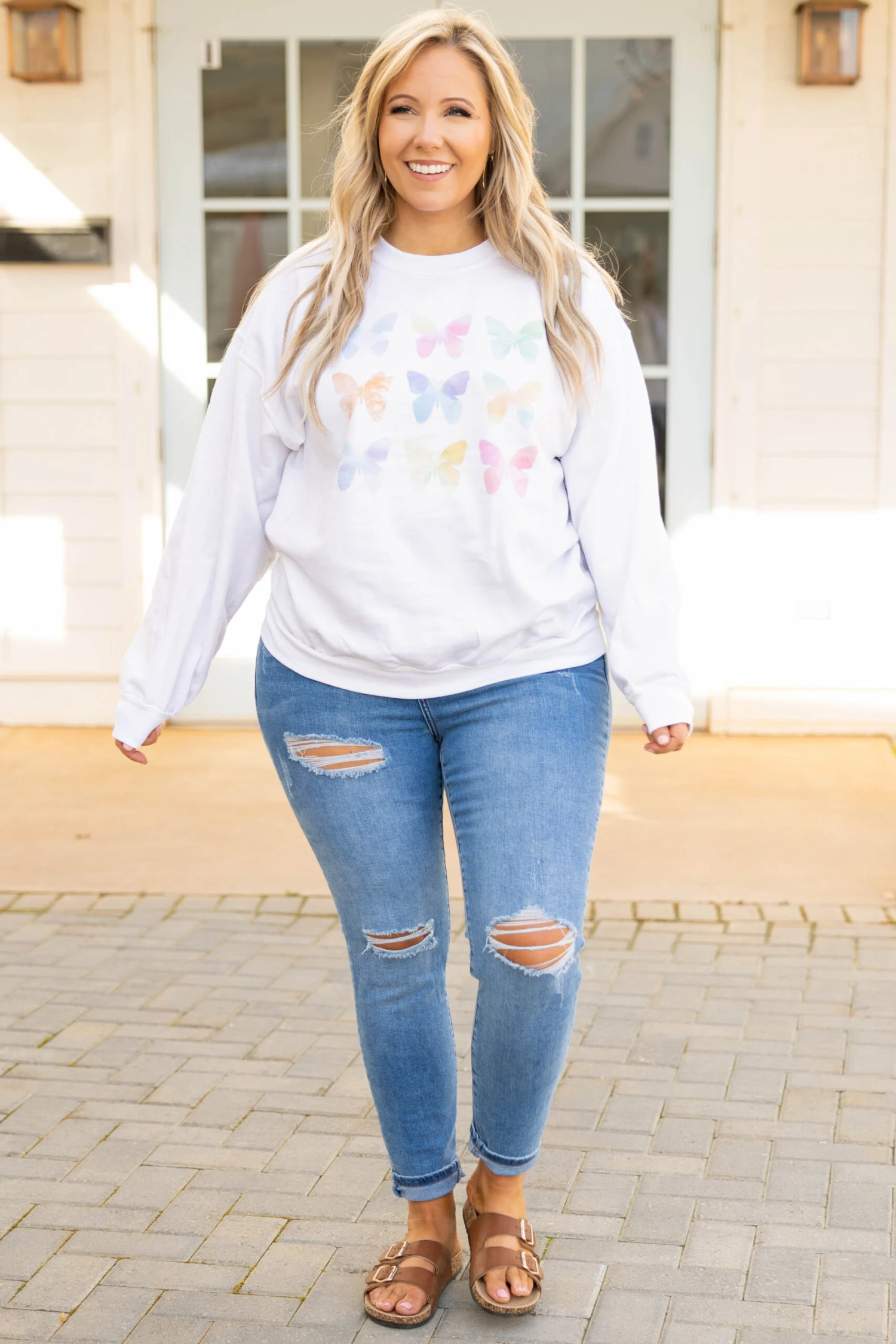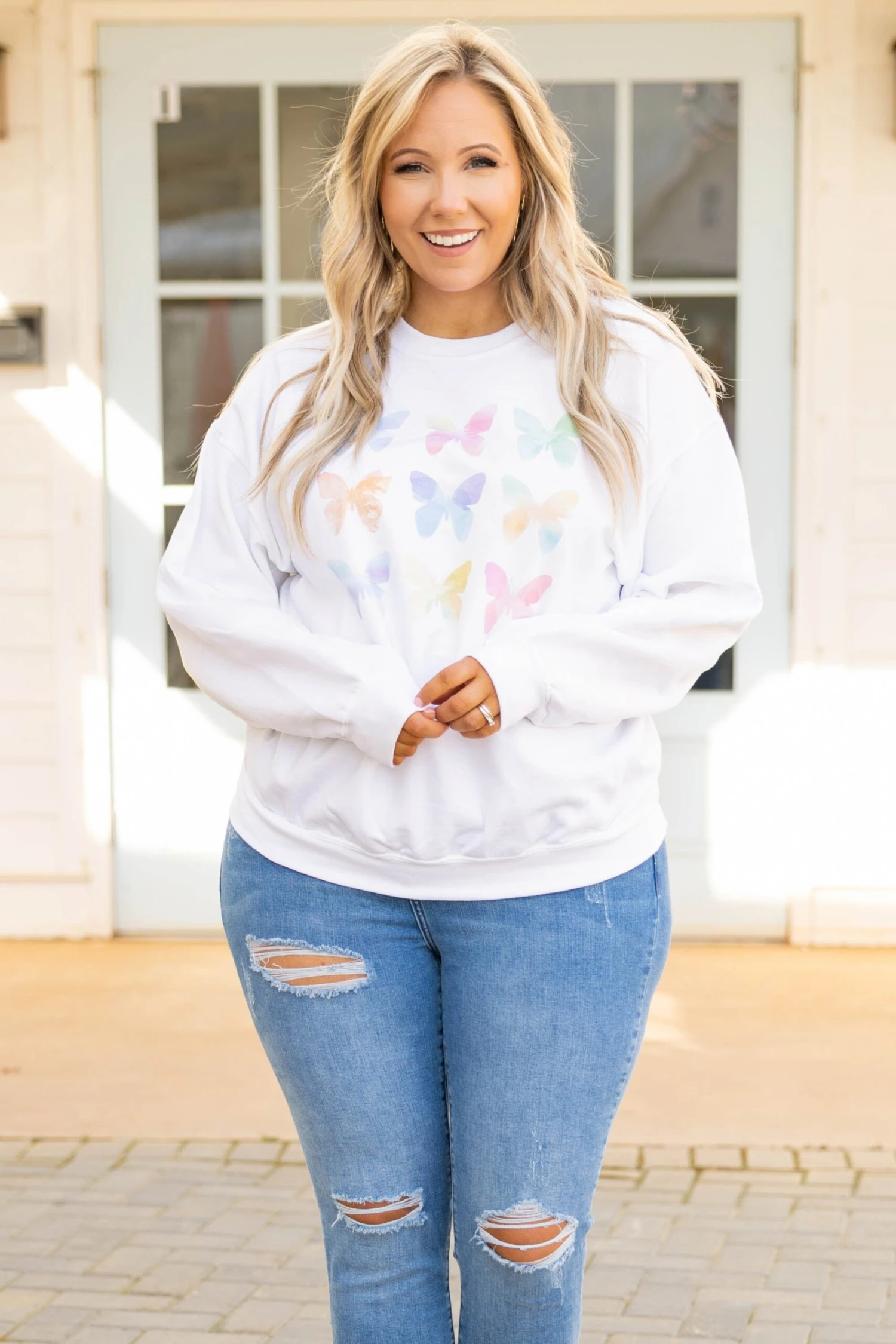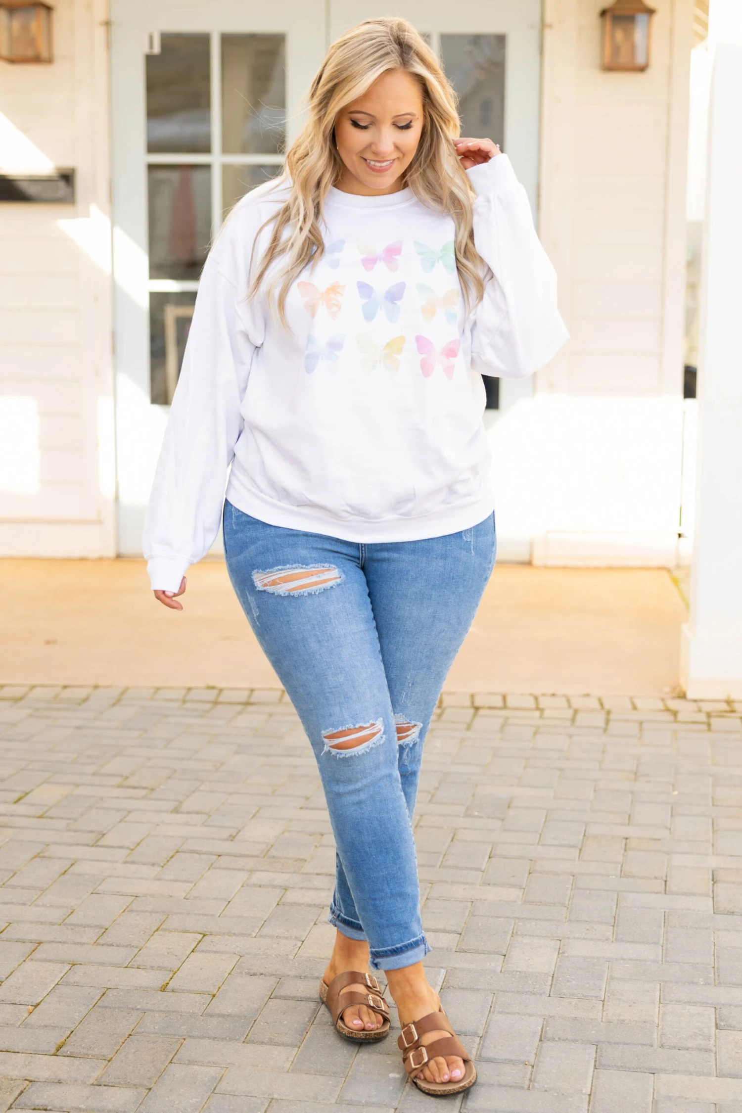This sweatshirt gives us butterflies! The white color can be matched with all of your fave bottoms and the butterfly look is so on trend right now! Style this babe with some skinnies and sandals for a perfect look!