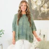 This top can be all yours in a couple clicks! This top in ash jade is made with textured material, a trendy acid wash, and exposed seams, ensuring comfort and stretch for a perfect, casual day out! Pair this cutie with some white denim and heels or sandals for a casual chic look!