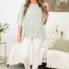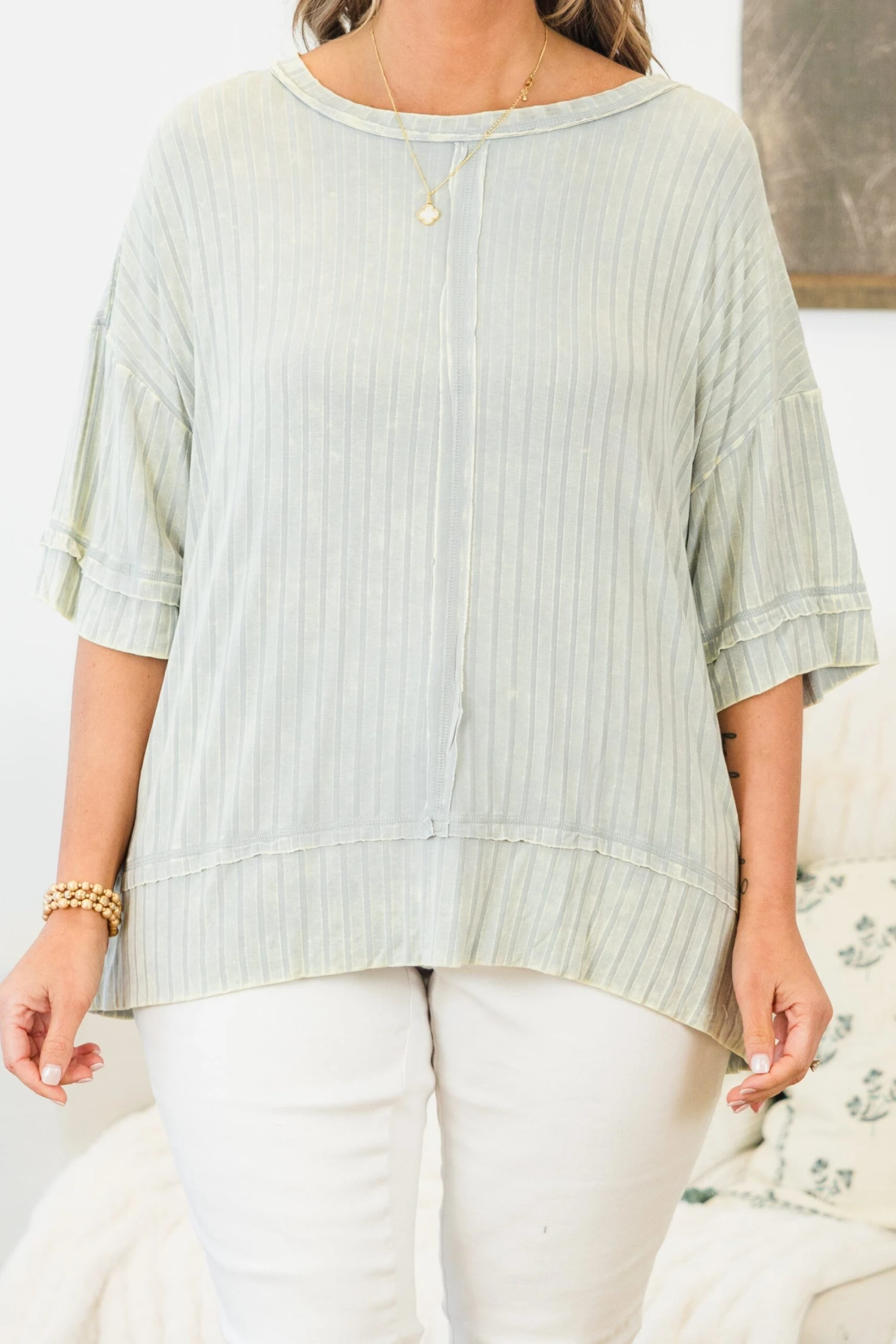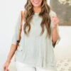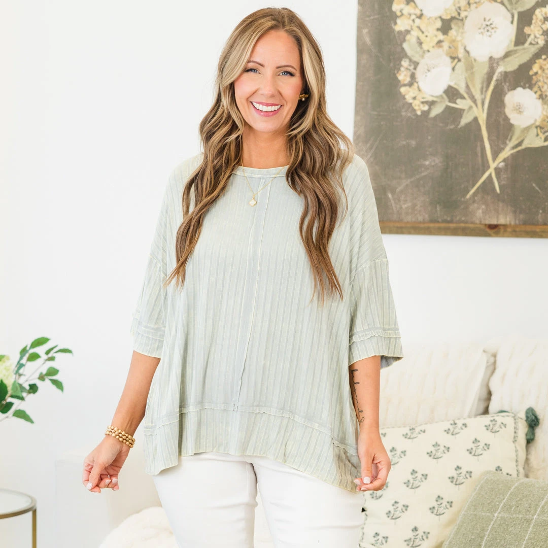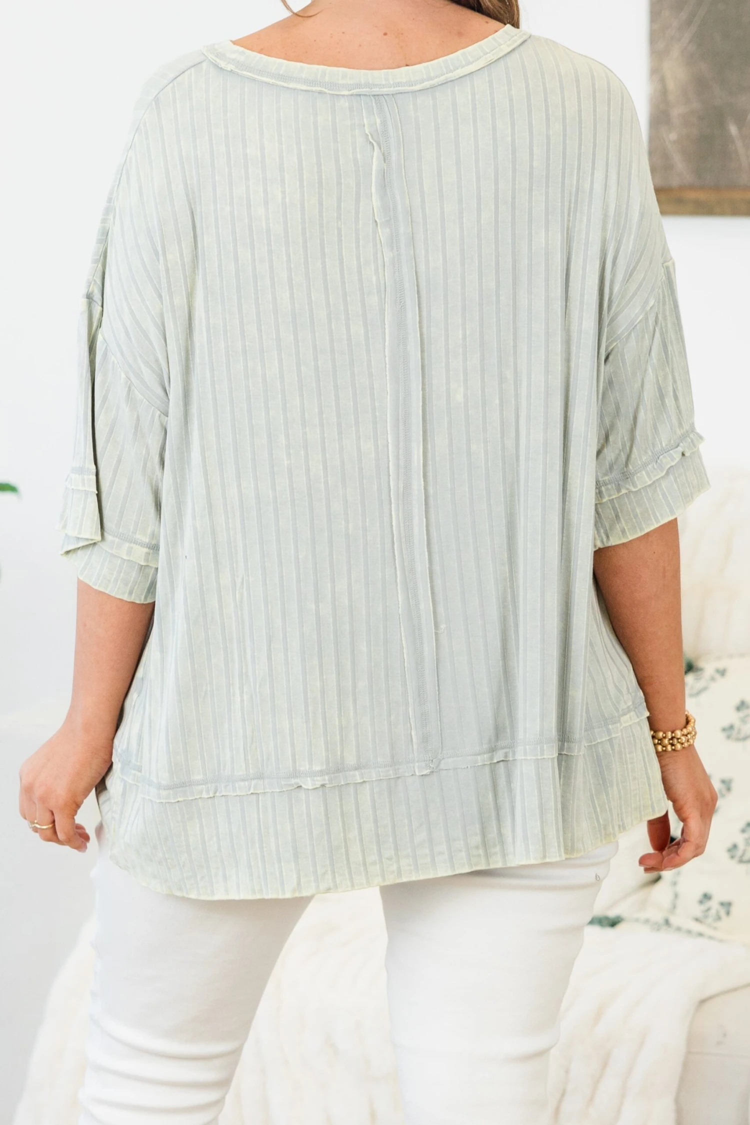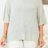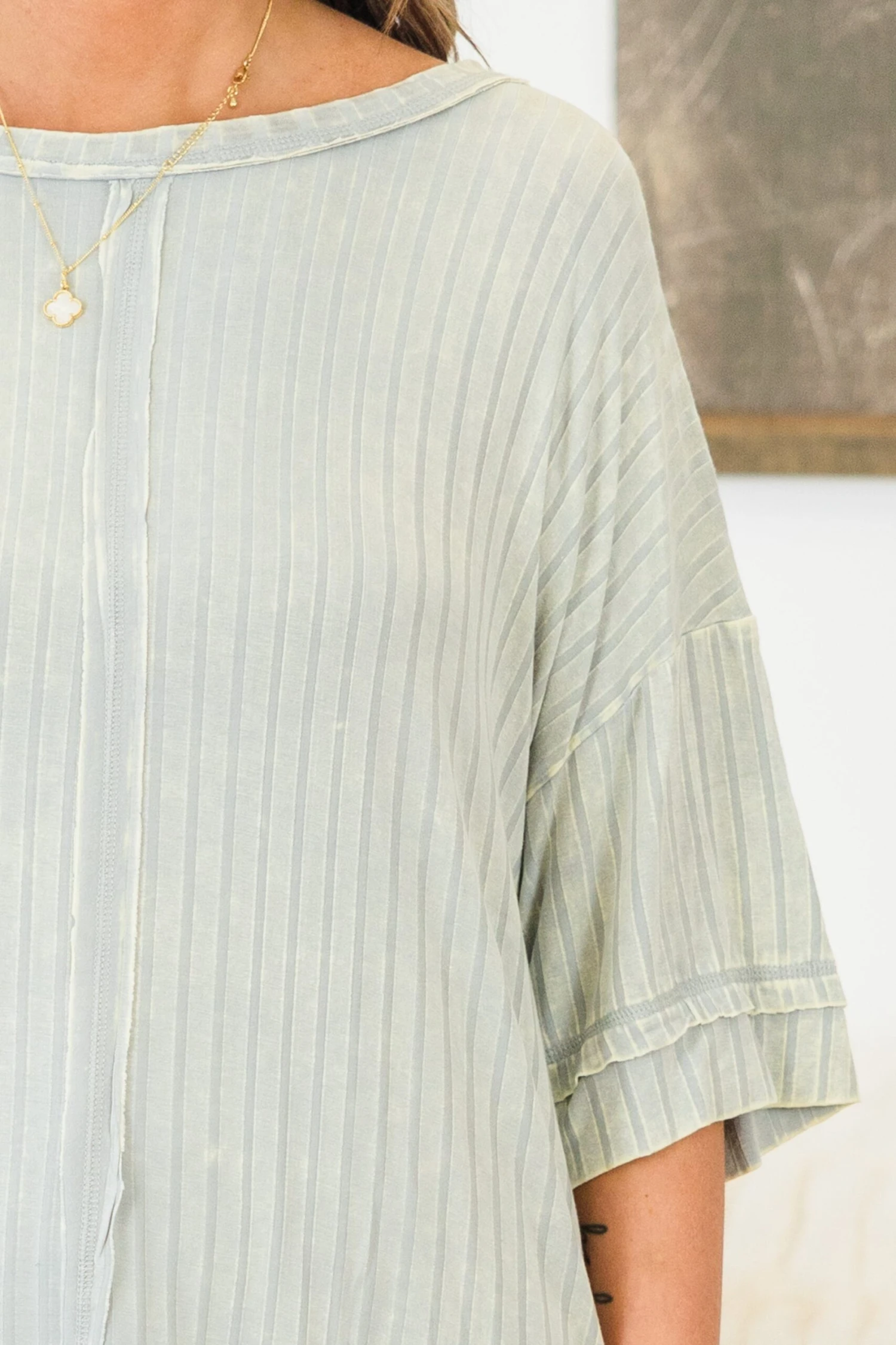 This top can be all yours in a couple clicks! This top in light grey is made with textured material, a trendy acid wash, and exposed seams, ensuring comfort and stretch for a perfect, casual day out! Pair this cutie with some white denim and heels or sandals for a casual chic look!