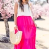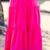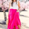 You’ll be glowing in this mesmerizing skirt! It features a bold hot pink color that will make you stand out and an elastic waistband for a comfortable fit! Its flowy design is perfect for a brunch date or a day out on the town! Add a pop of color to your wardrobe with this statement piece!