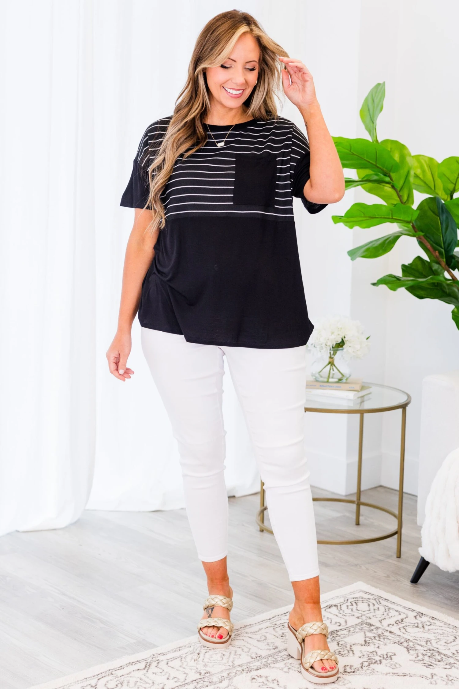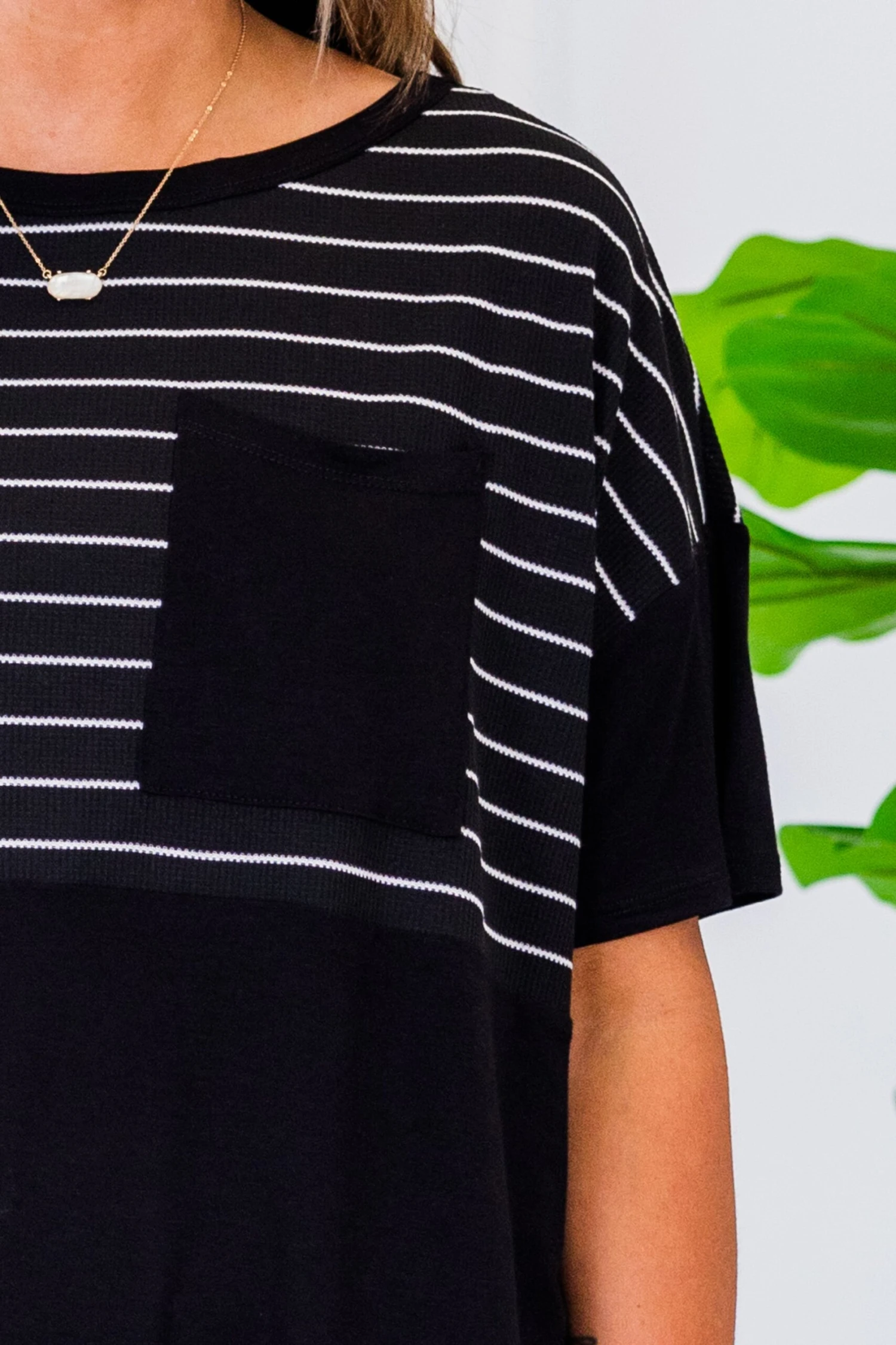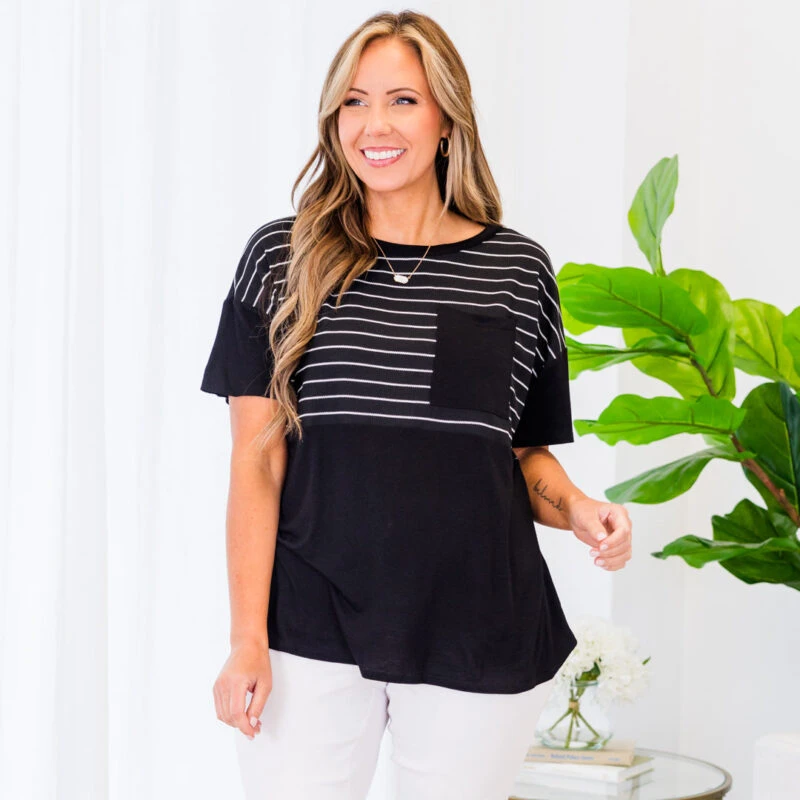 Effortlessly elevate your style with our Your Essential Top! This versatile piece features a contrast color block design, accented with a convenient pocket! Pair it with your favorite denim or leggings for a chic and easy look! Perfect for any occasion!